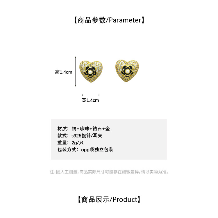 Camellia Heart-shaped Earrings Exquisite Black And White Drip Enamel Earrings