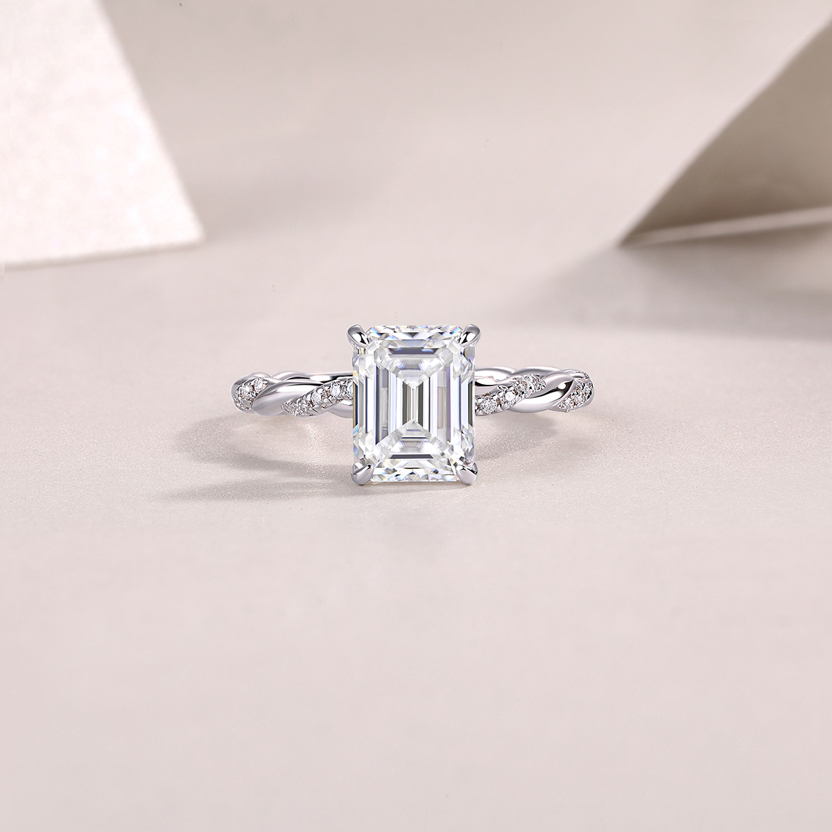 Chasing Light - A Wedding Ring Set With Top-quality Octagonal Moissanite S925 In Silver And Platinum-plated. The Ring Can Be Inspected With A Diamond Pen