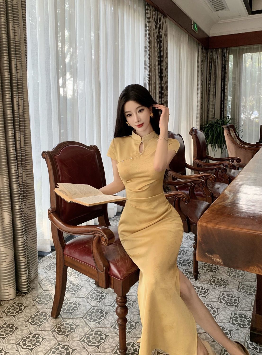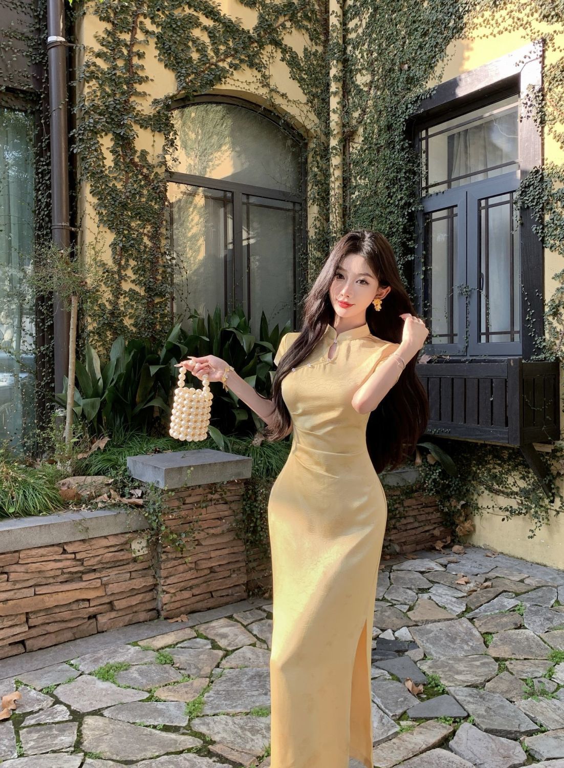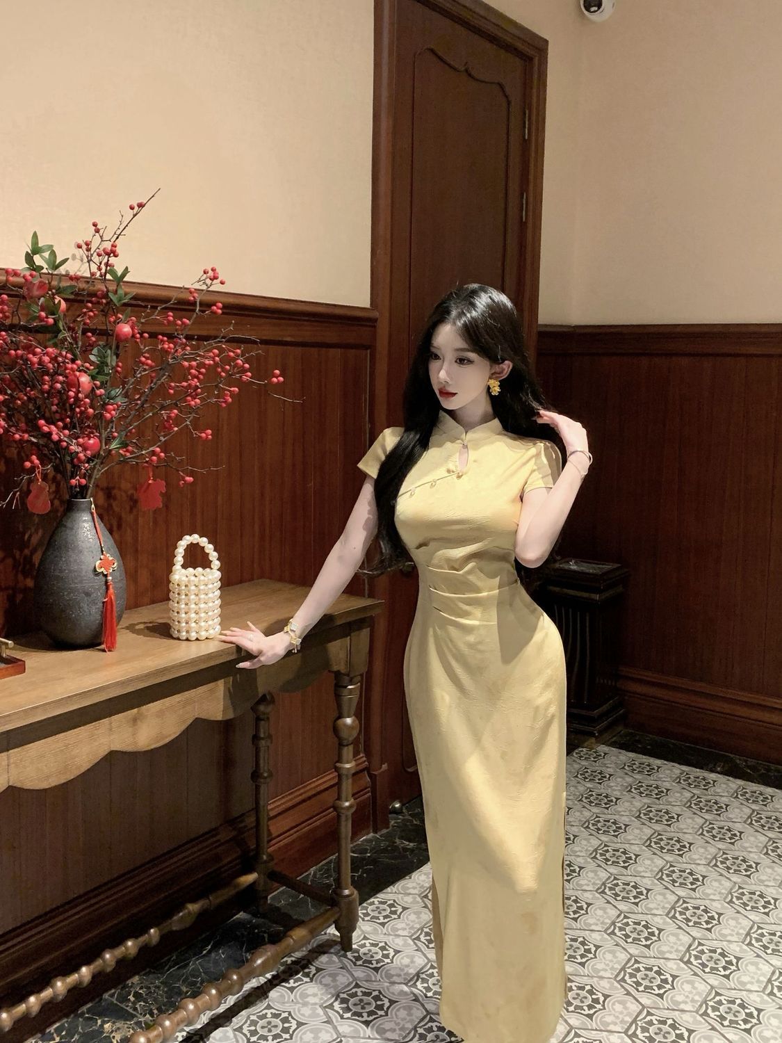 Chinese-style Soft Pale Yellow Dress That Flatters The Complexion