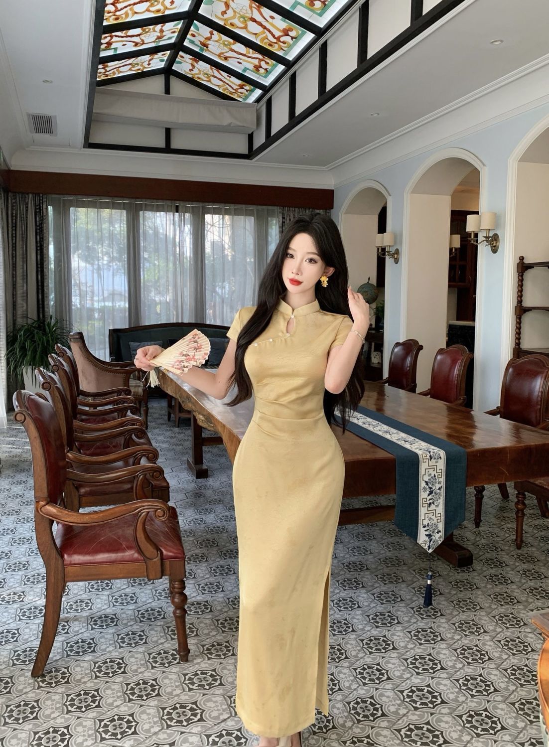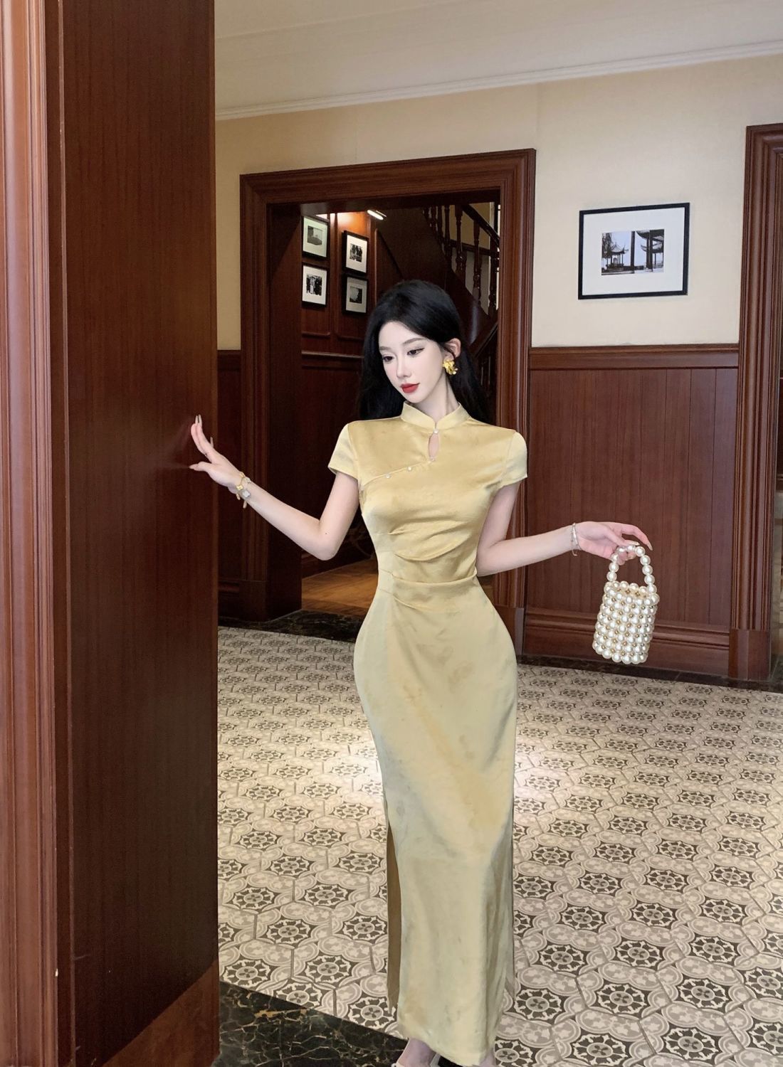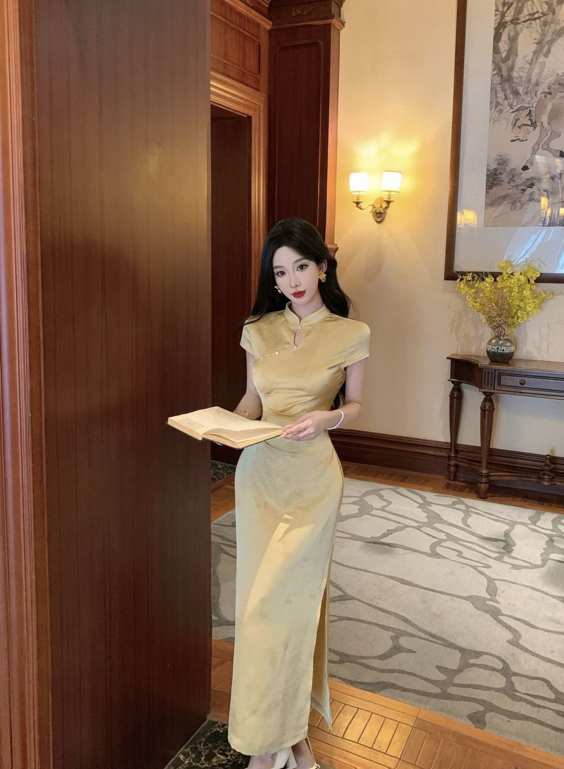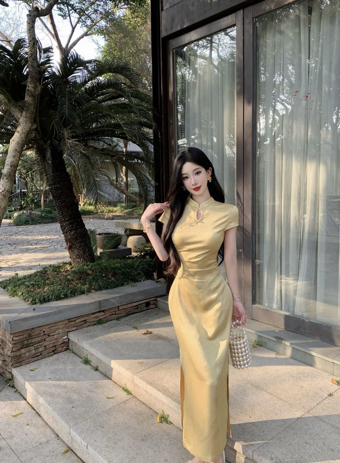 Chinese-style Soft Pale Yellow Dress That Flatters The Complexion