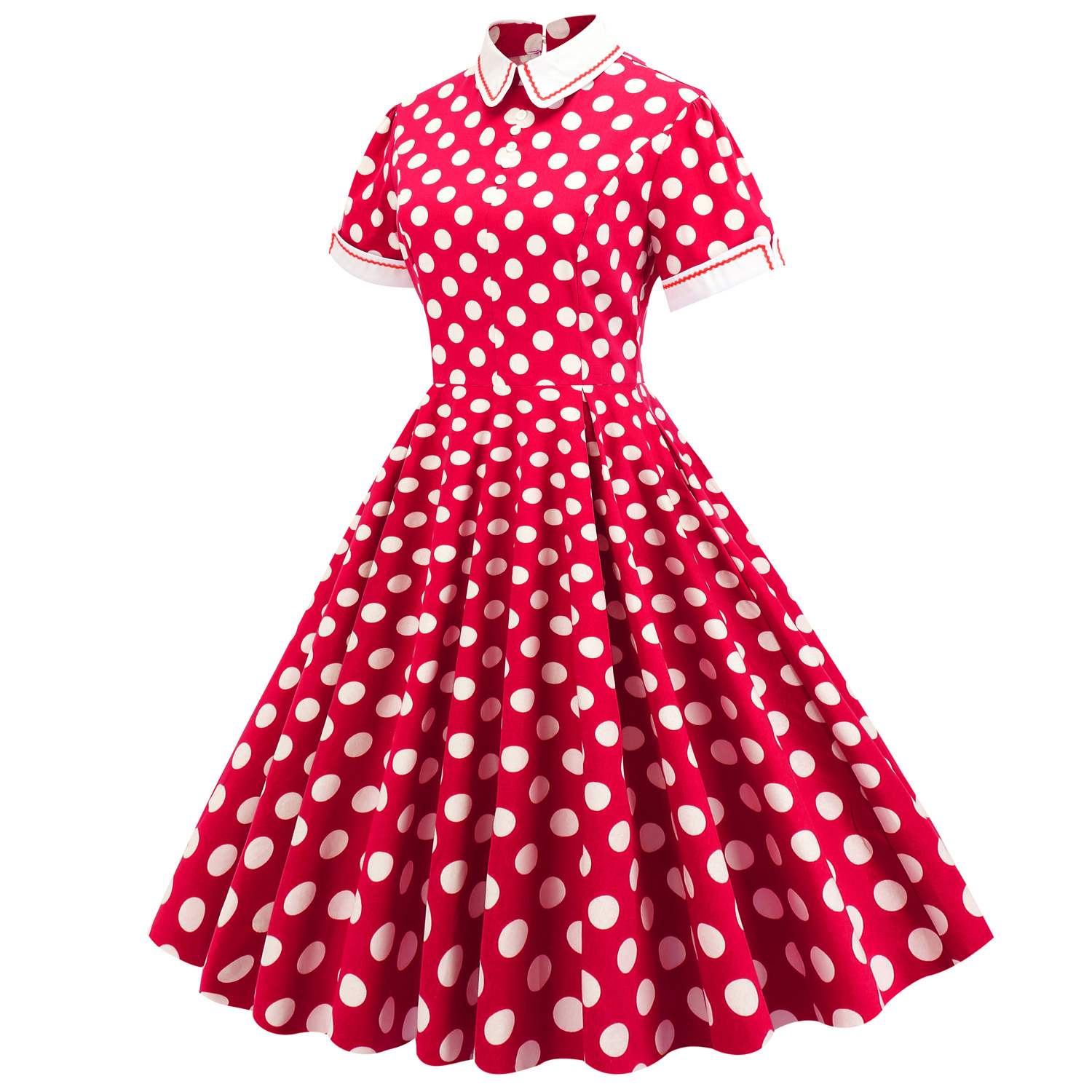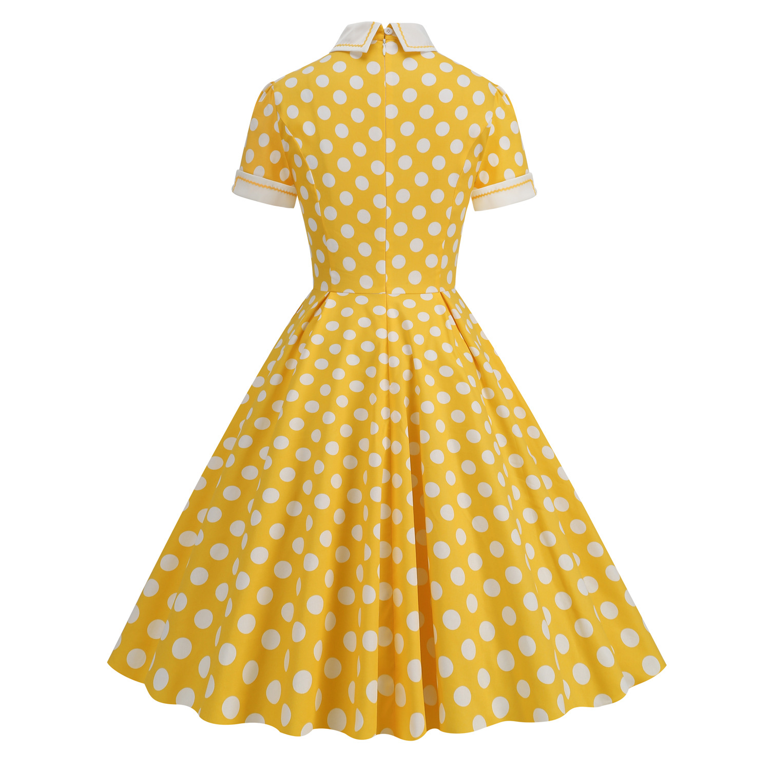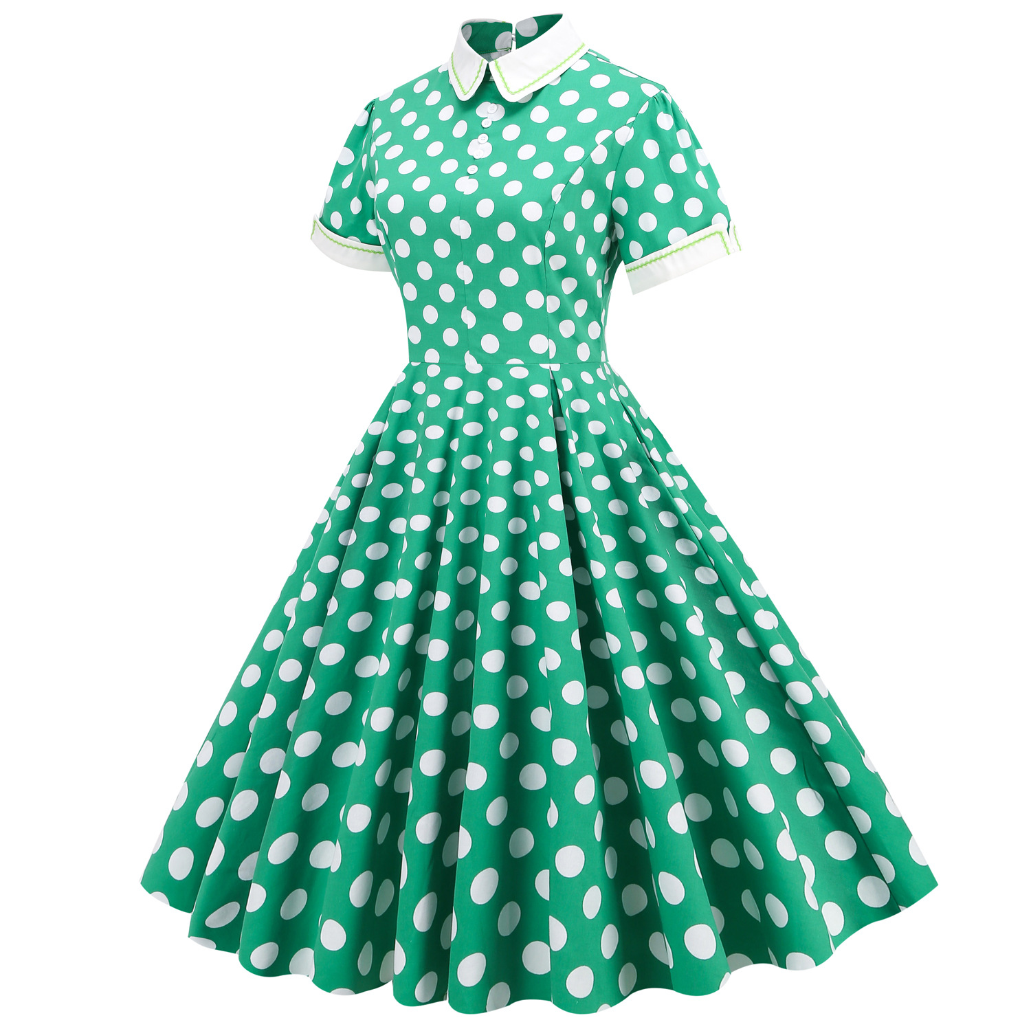 Elegant Polka Dot Photo Maxi Skirt Retro Dress