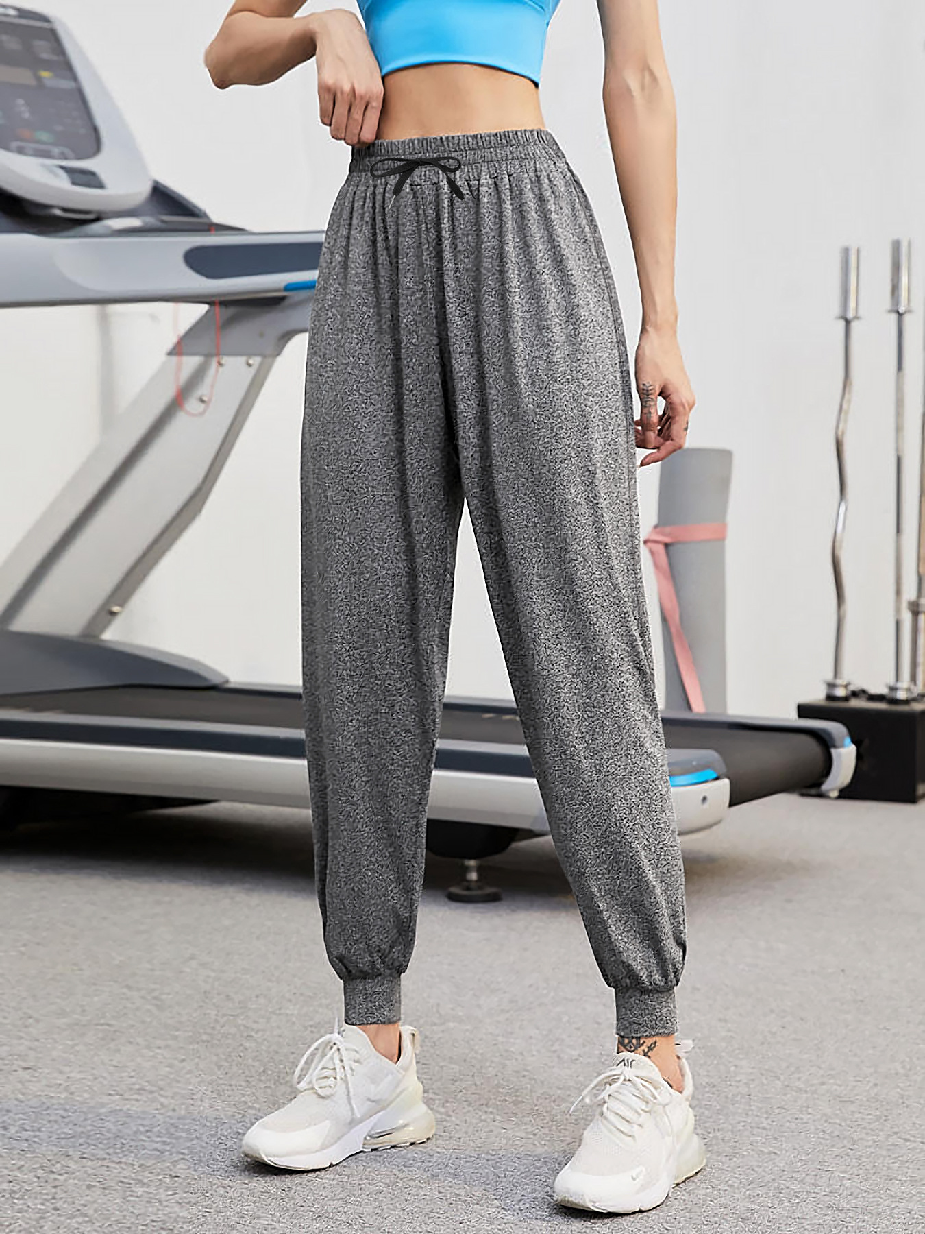 High-waisted Versatile Loose Casual Pants With Cuffed Ankles For Slimming Fitness Sports Trousers
