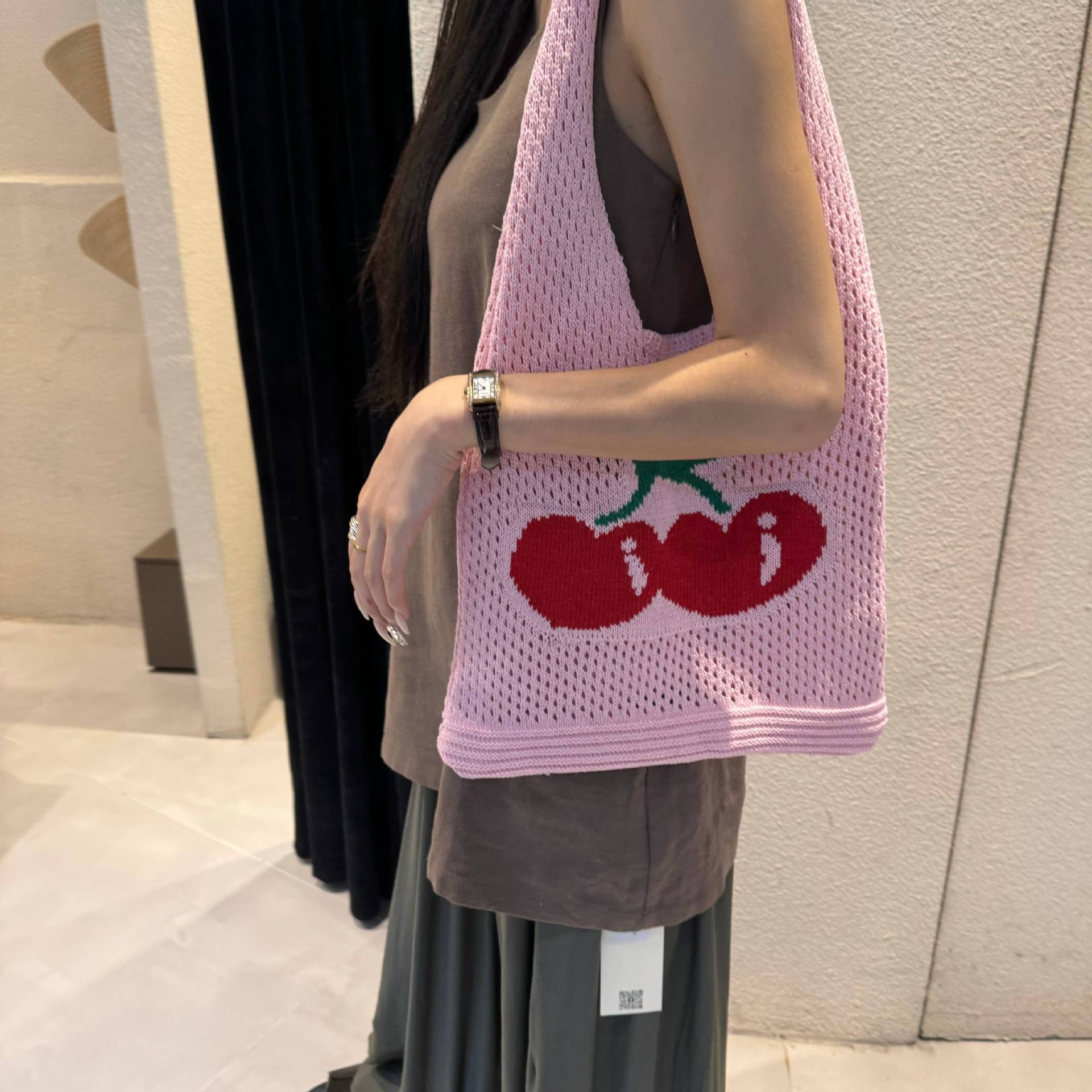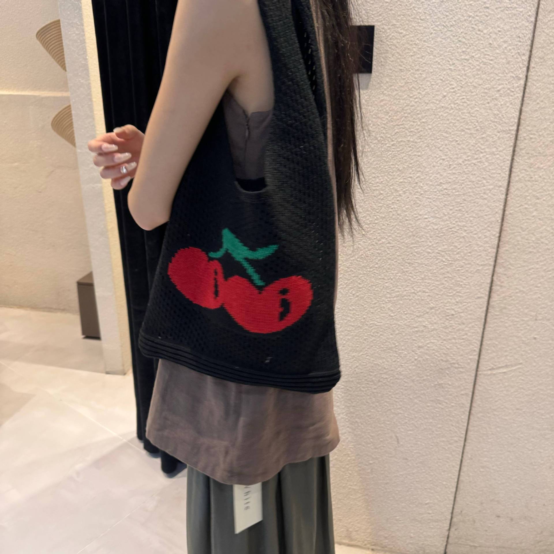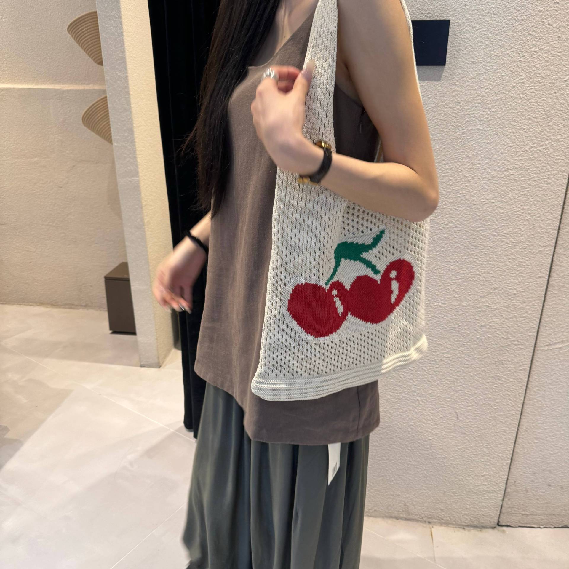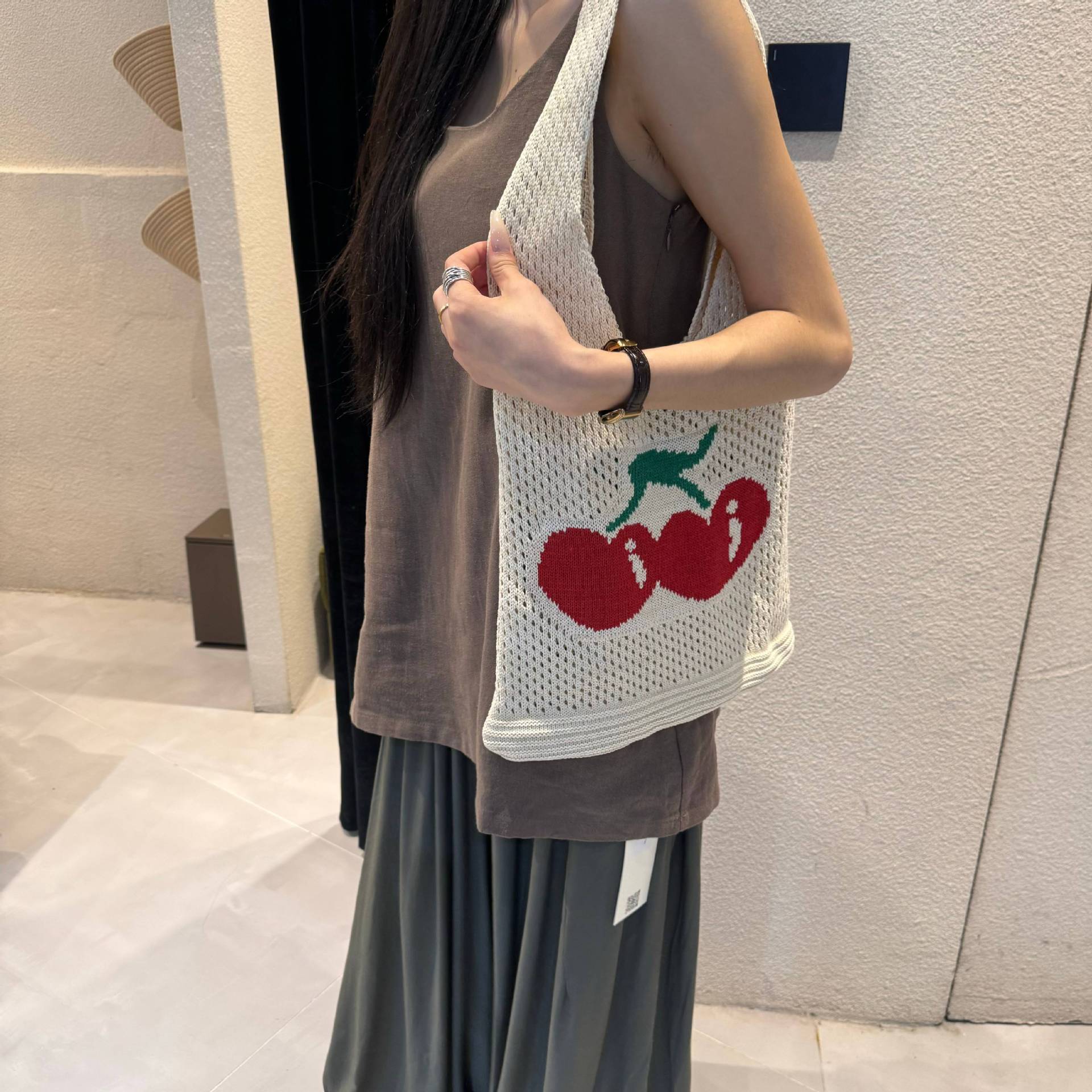 Large Capacity Totes Cherry Embroidered Handbag Knitted Hollow