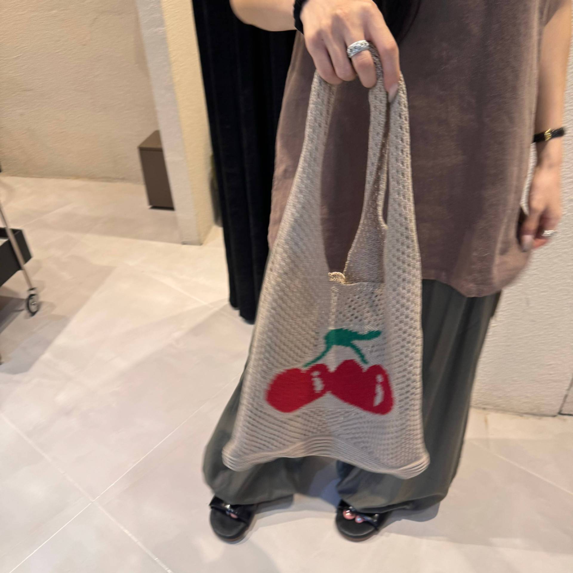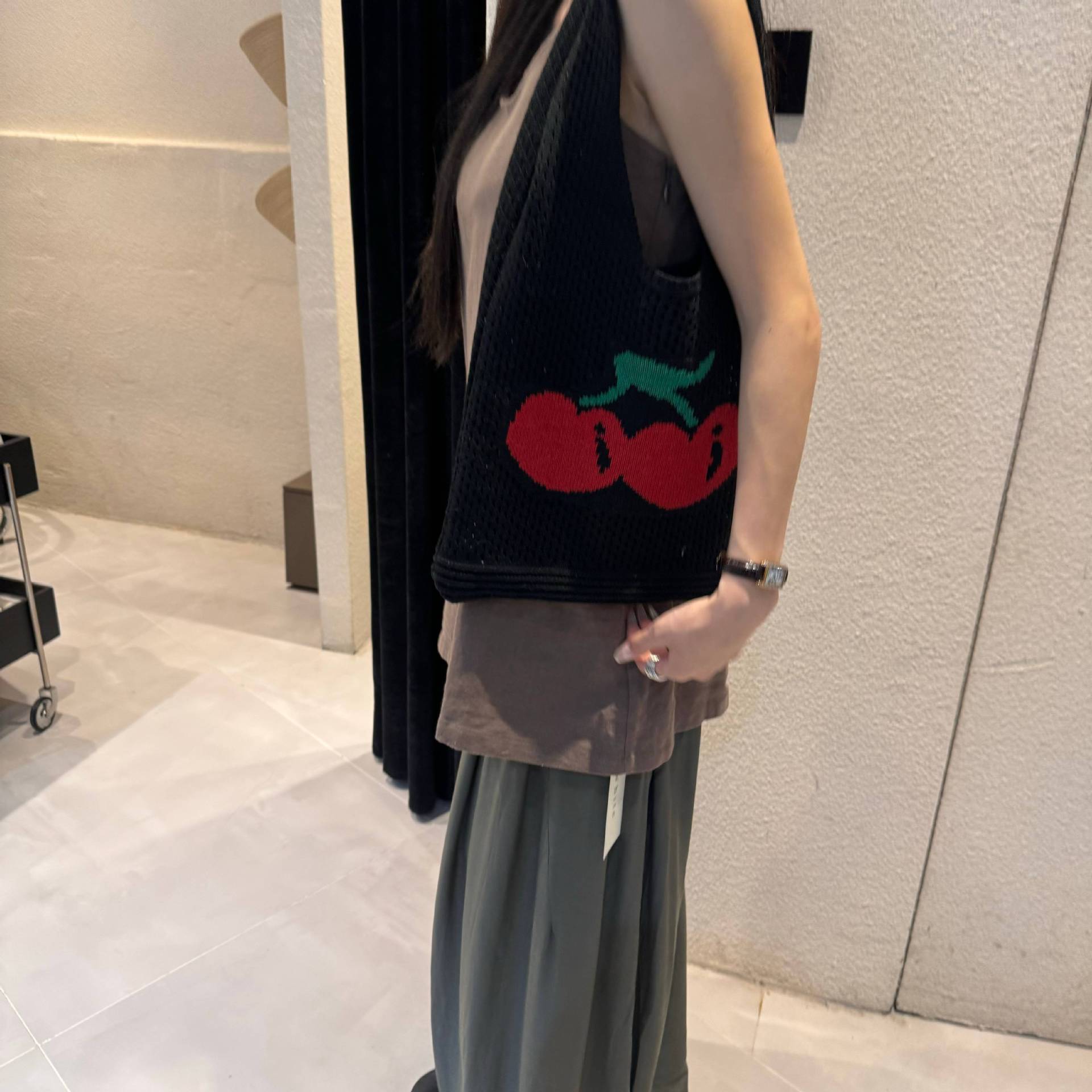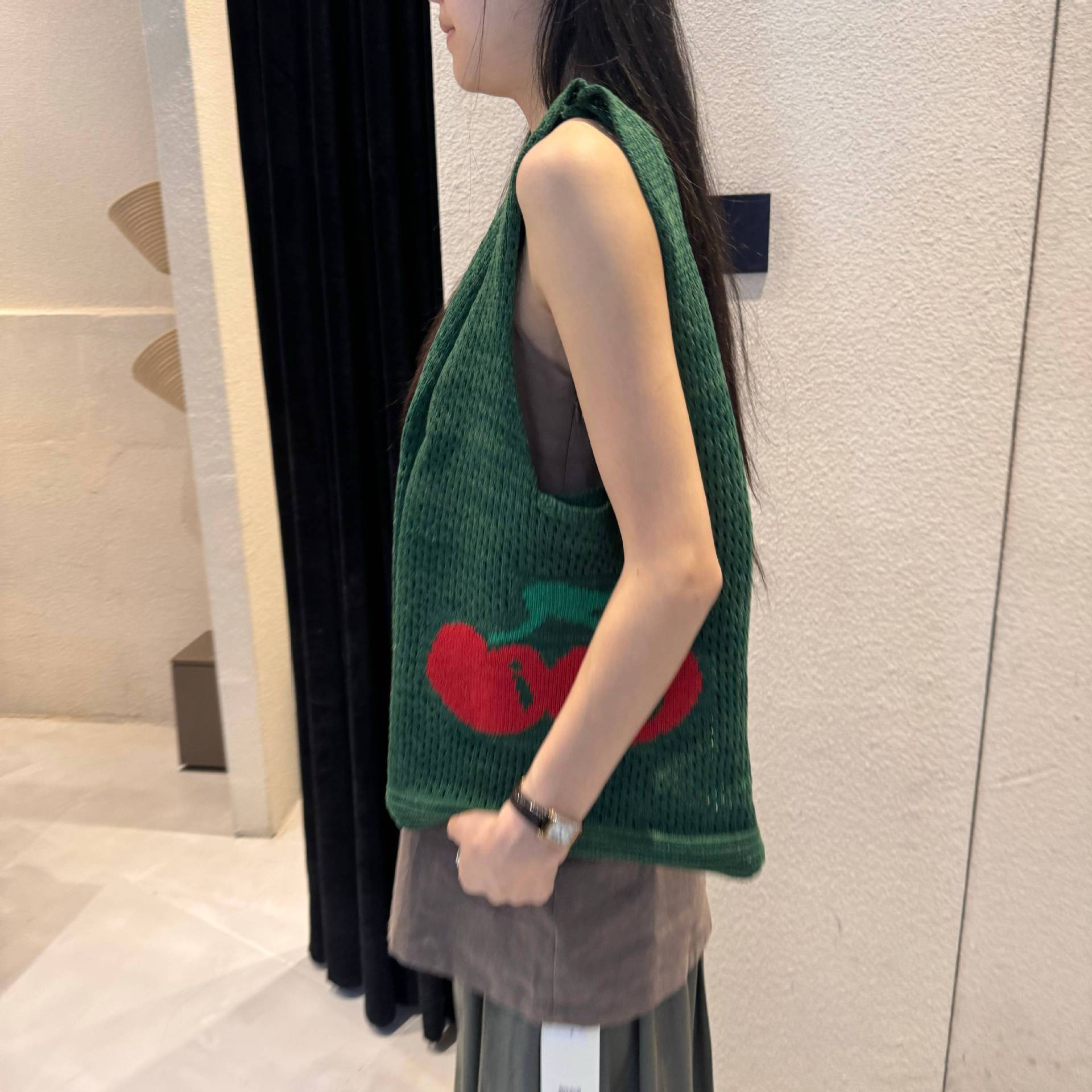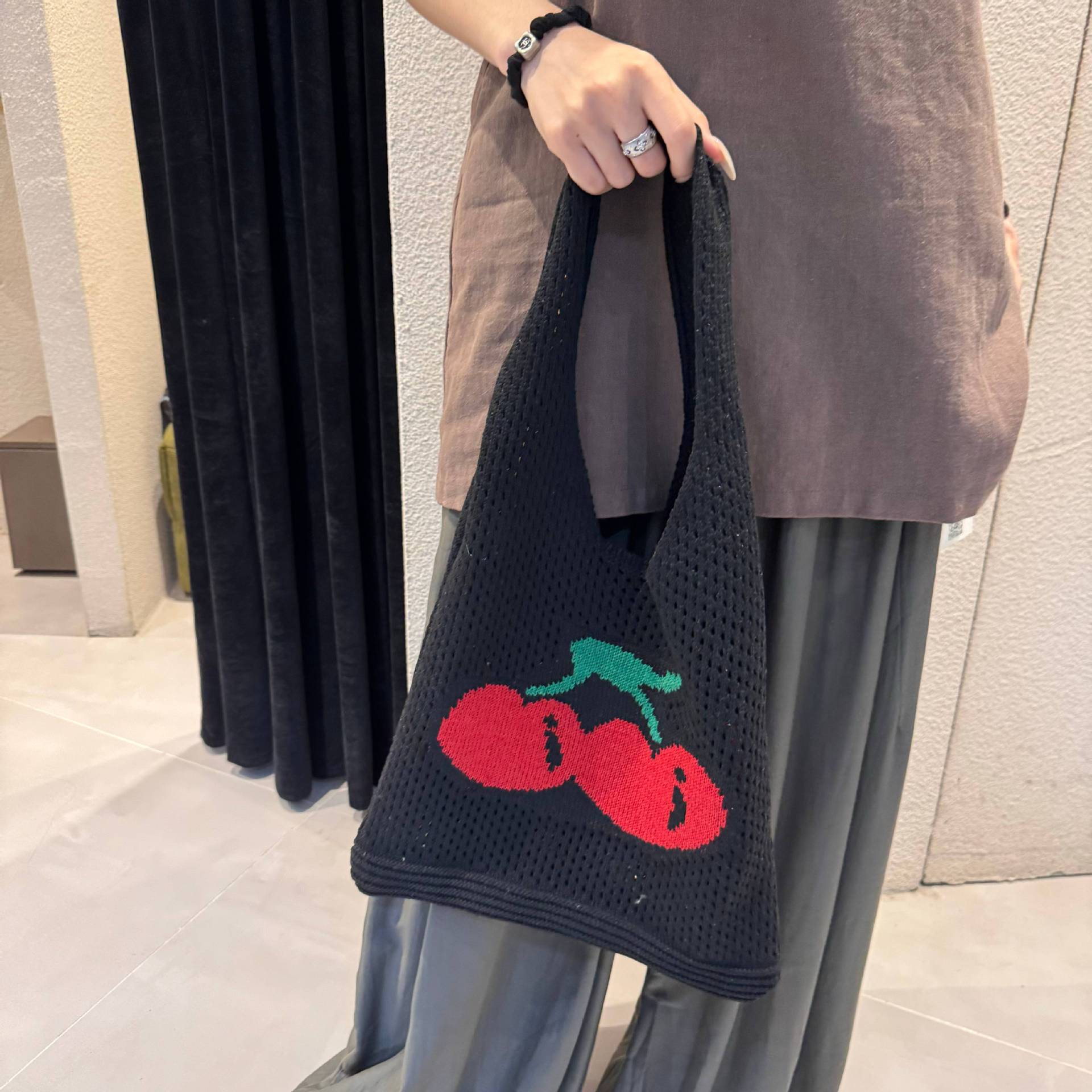 Large Capacity Totes Cherry Embroidered Handbag Knitted Hollow