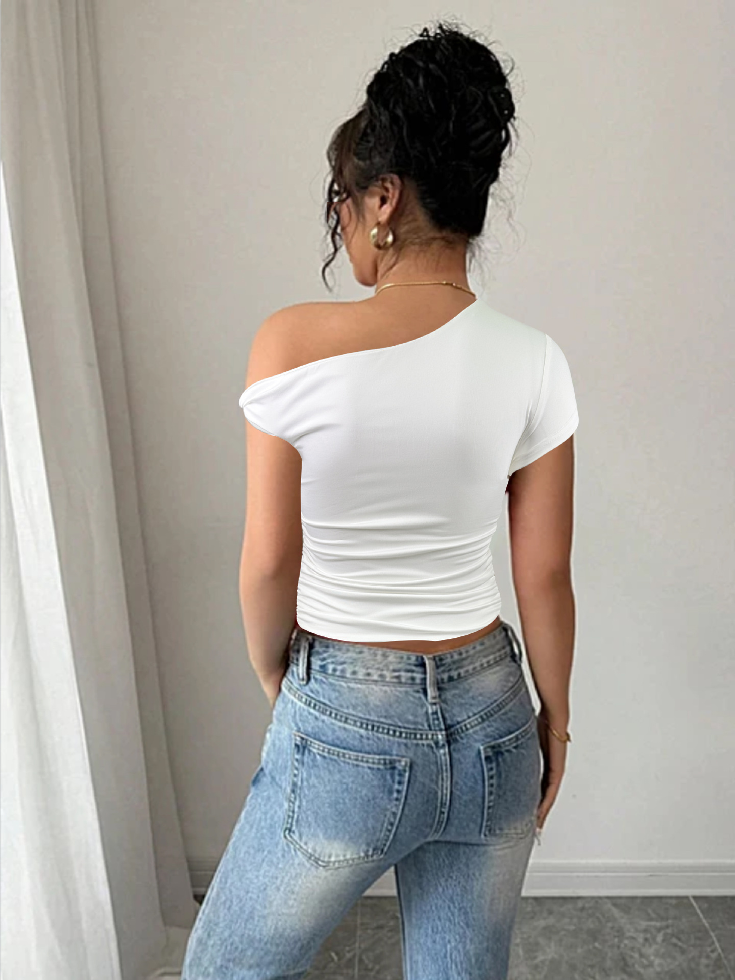 New Sexy Women's Top With Oblique Shoulder Neckline