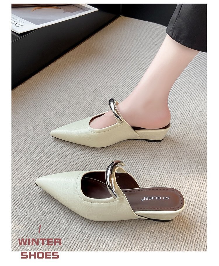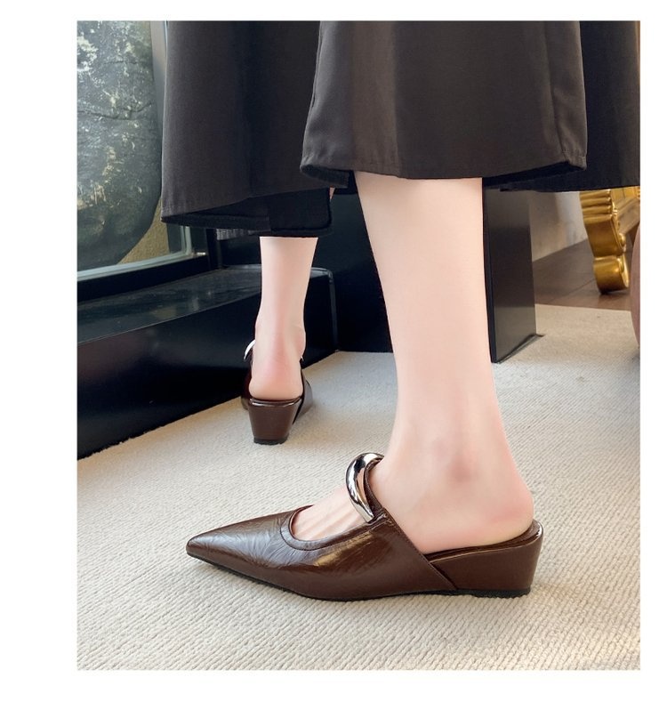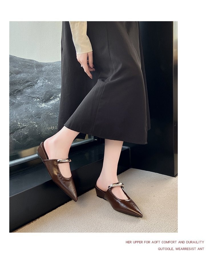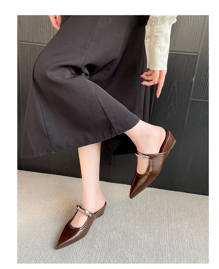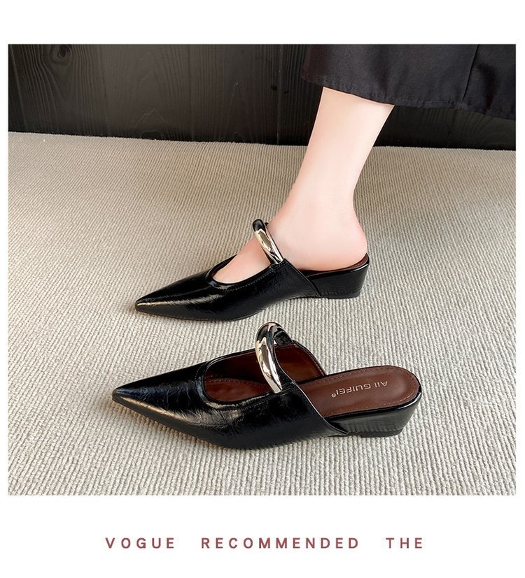 Pointed Toe Slip-on Mule Sandals With Chunky Heels