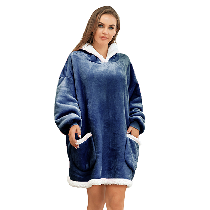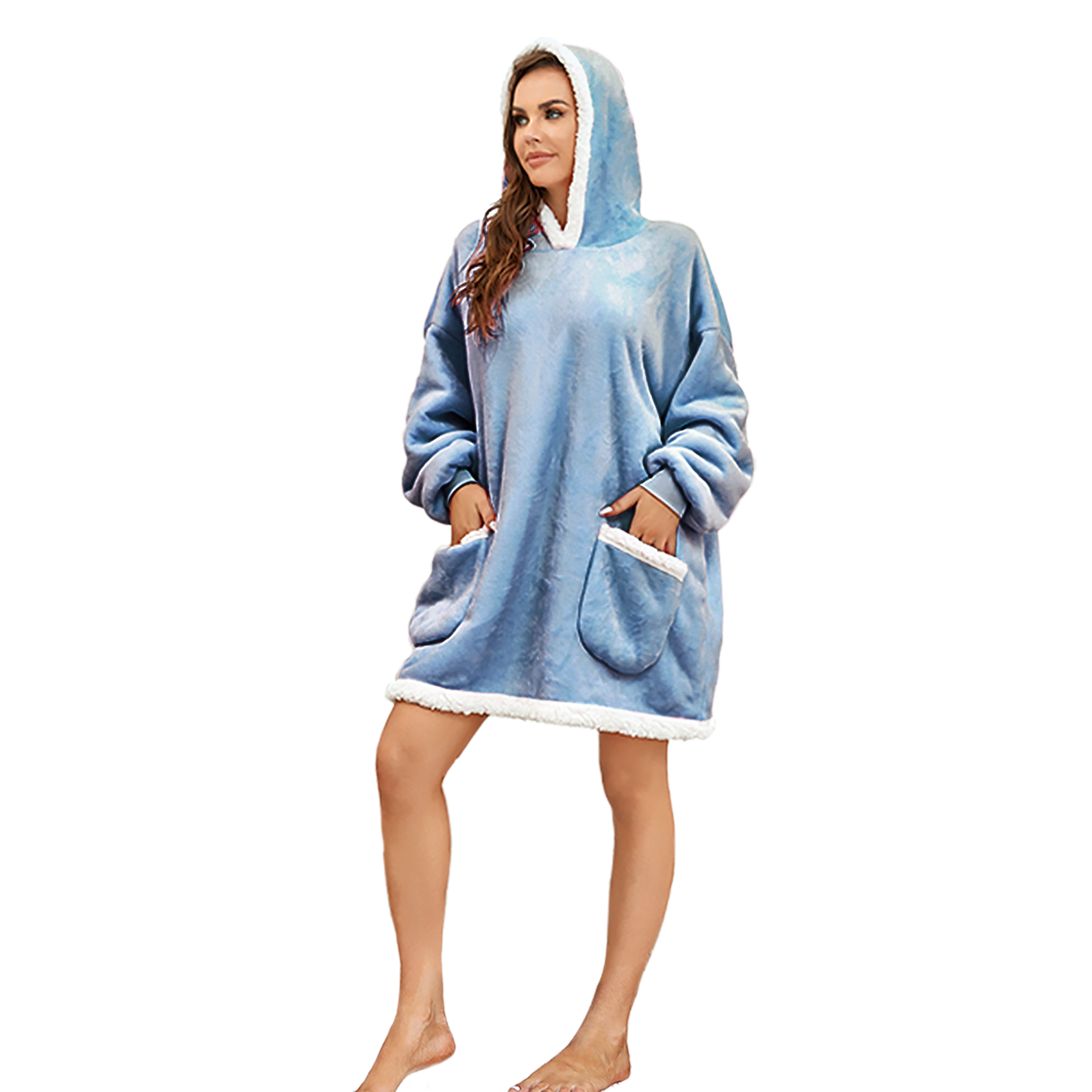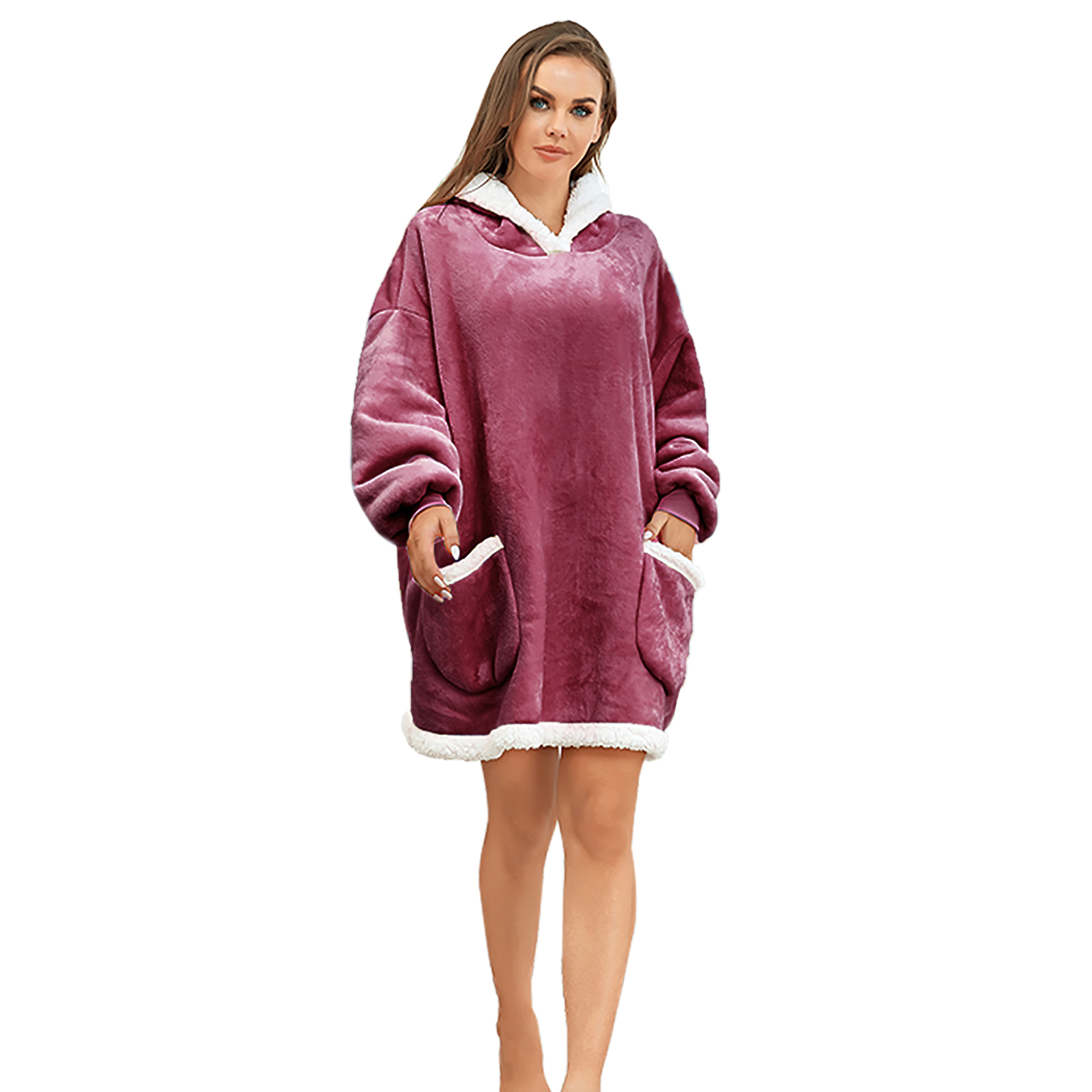 RONGTAI Oversized Wearable Pajamas With Big Pockets,Soft Plush Sweatshirt Hooded Popular Tops One Size Fits