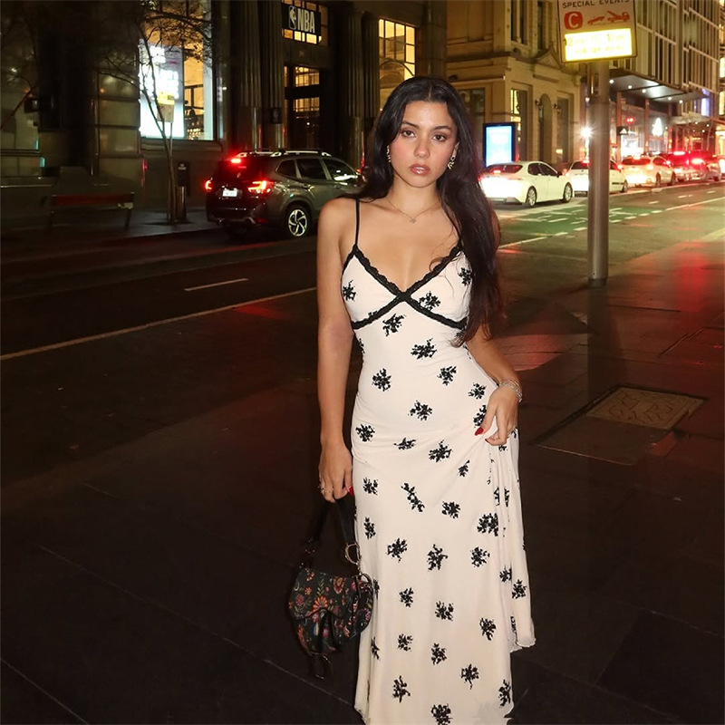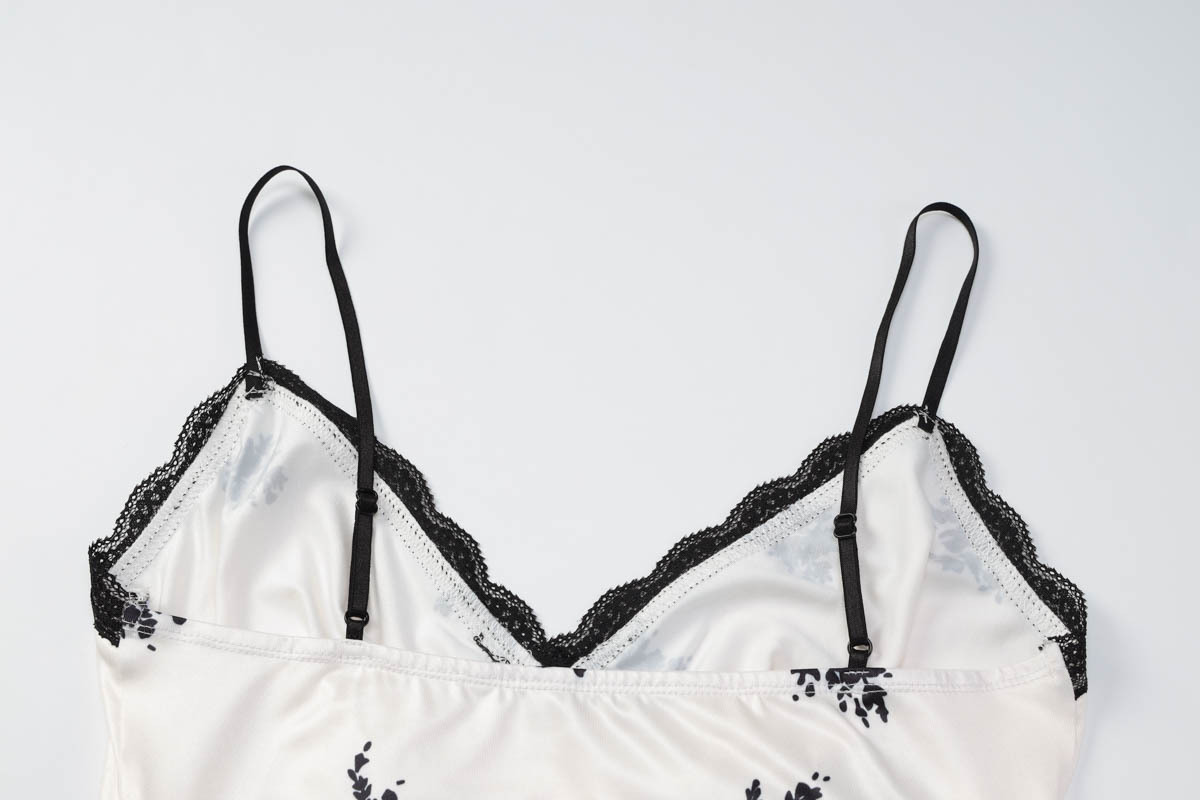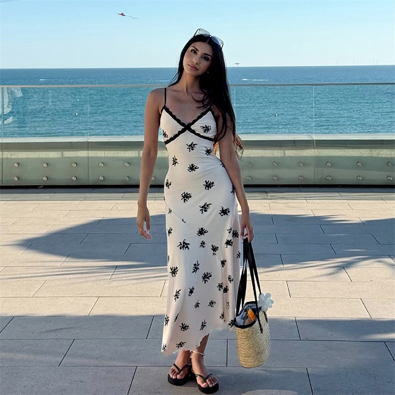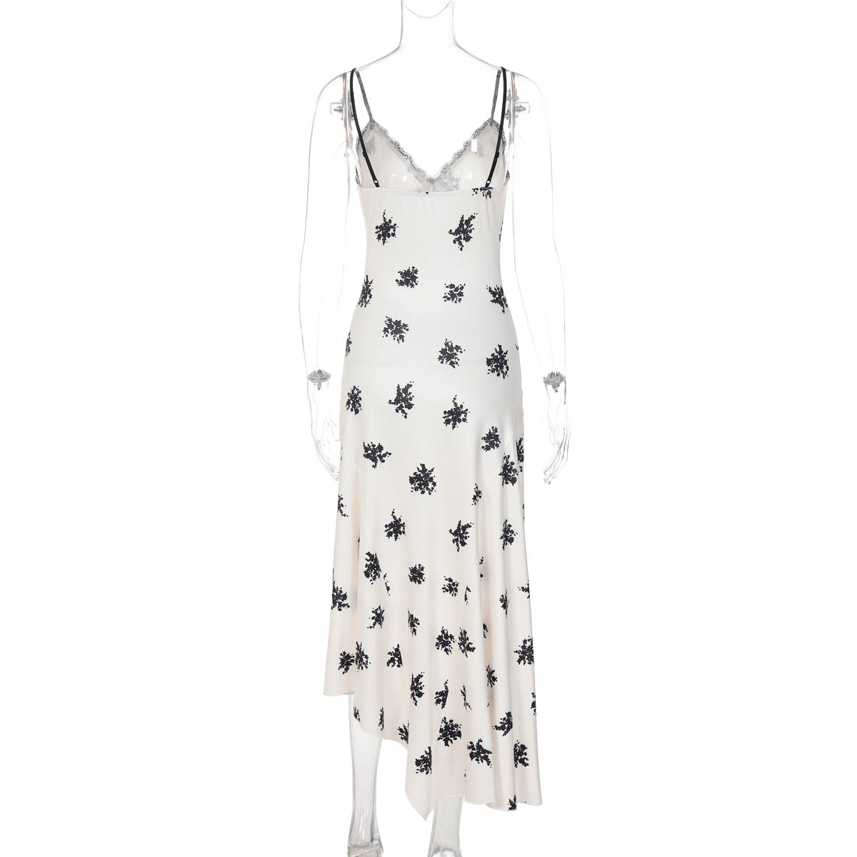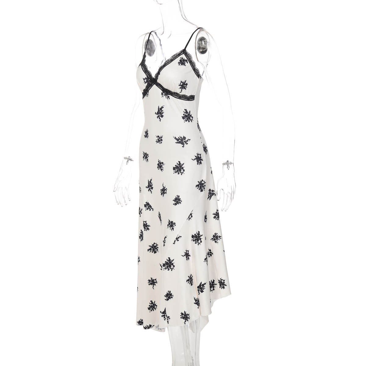 Spliced Lace V-neck Sleeveless Printed Suspender Dress