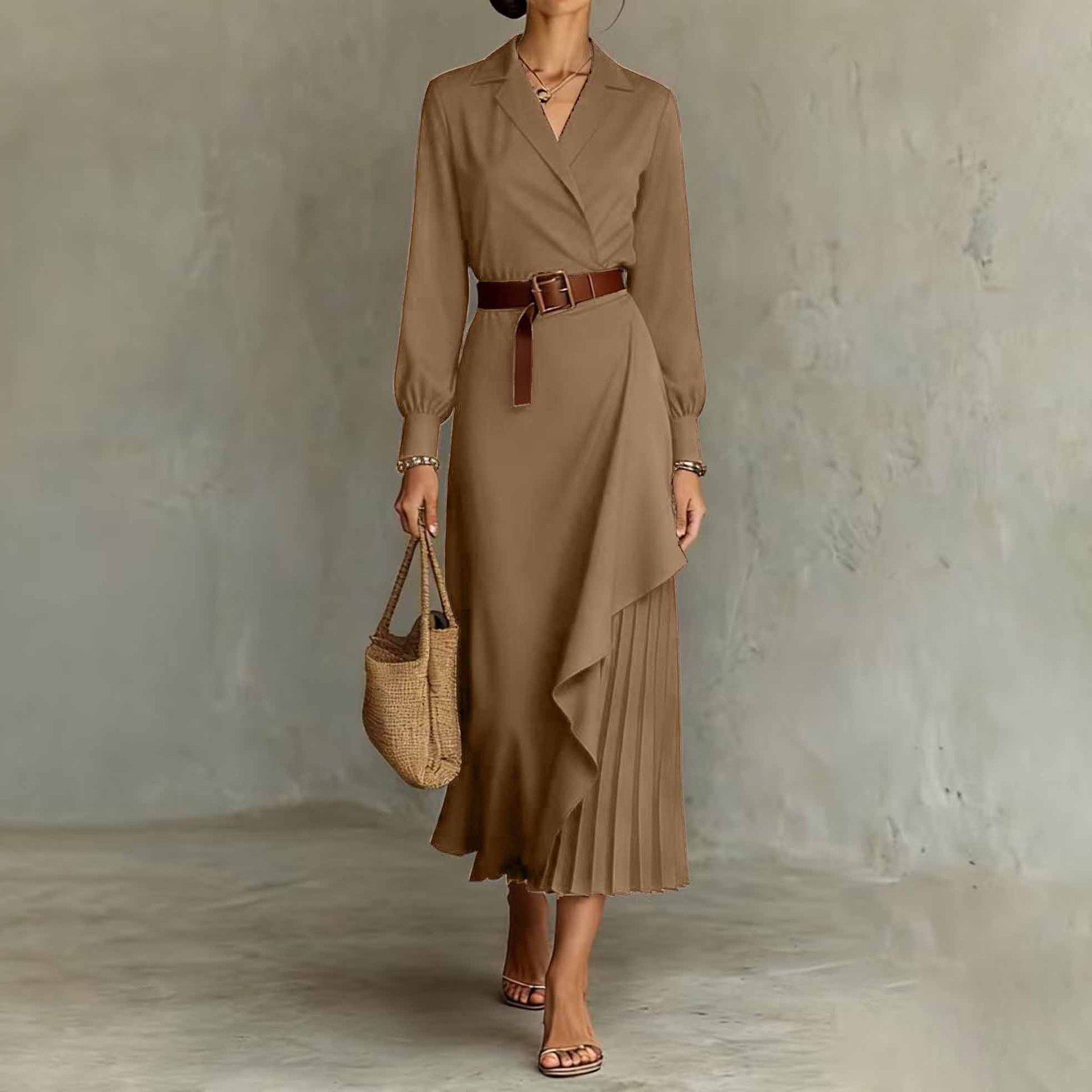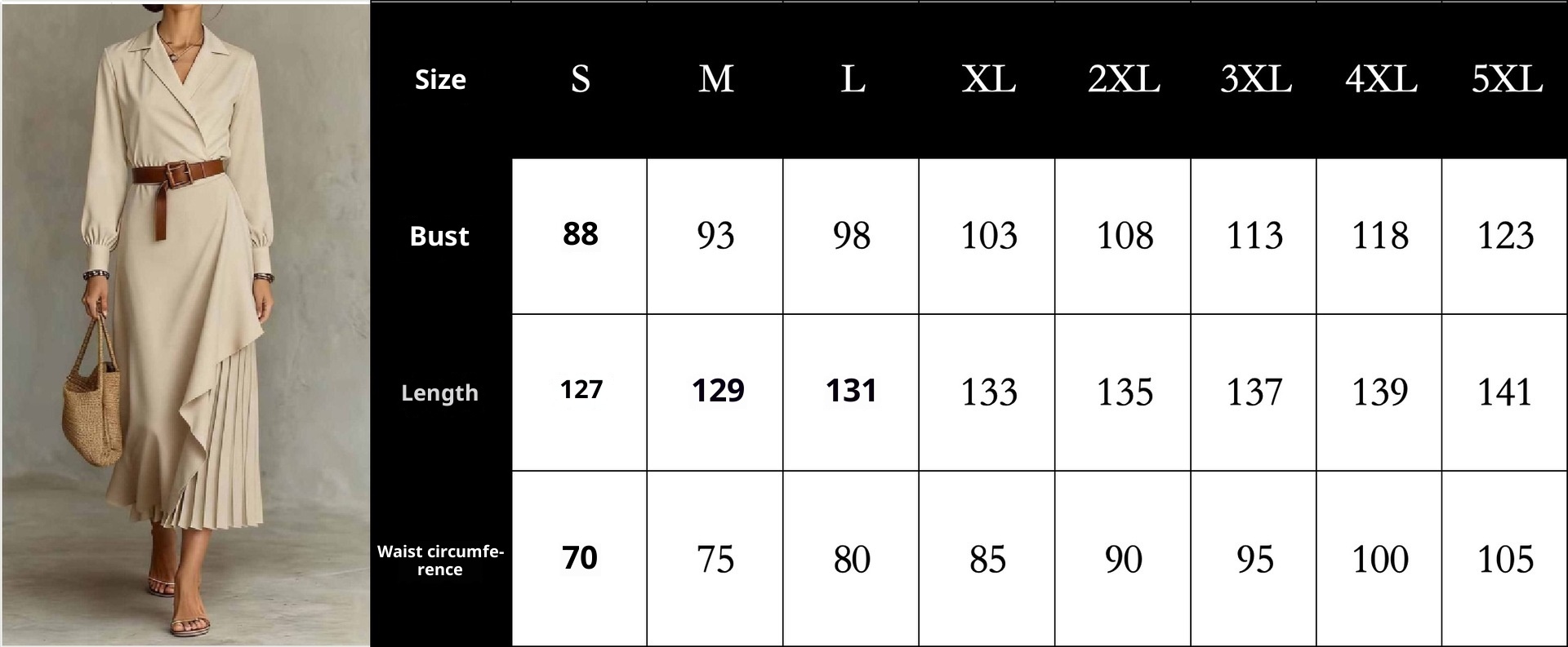 Western-style Irregular Pleated Long-sleeve Dress For Spring And Autumn