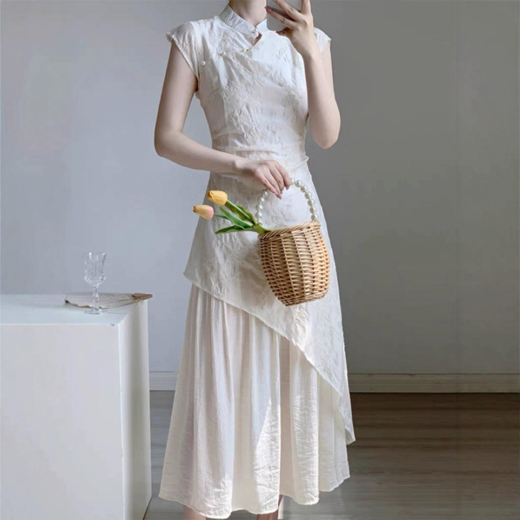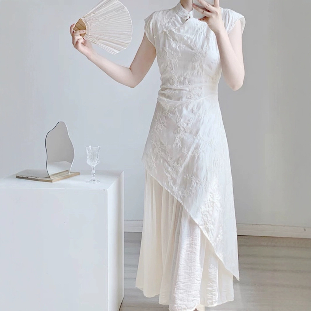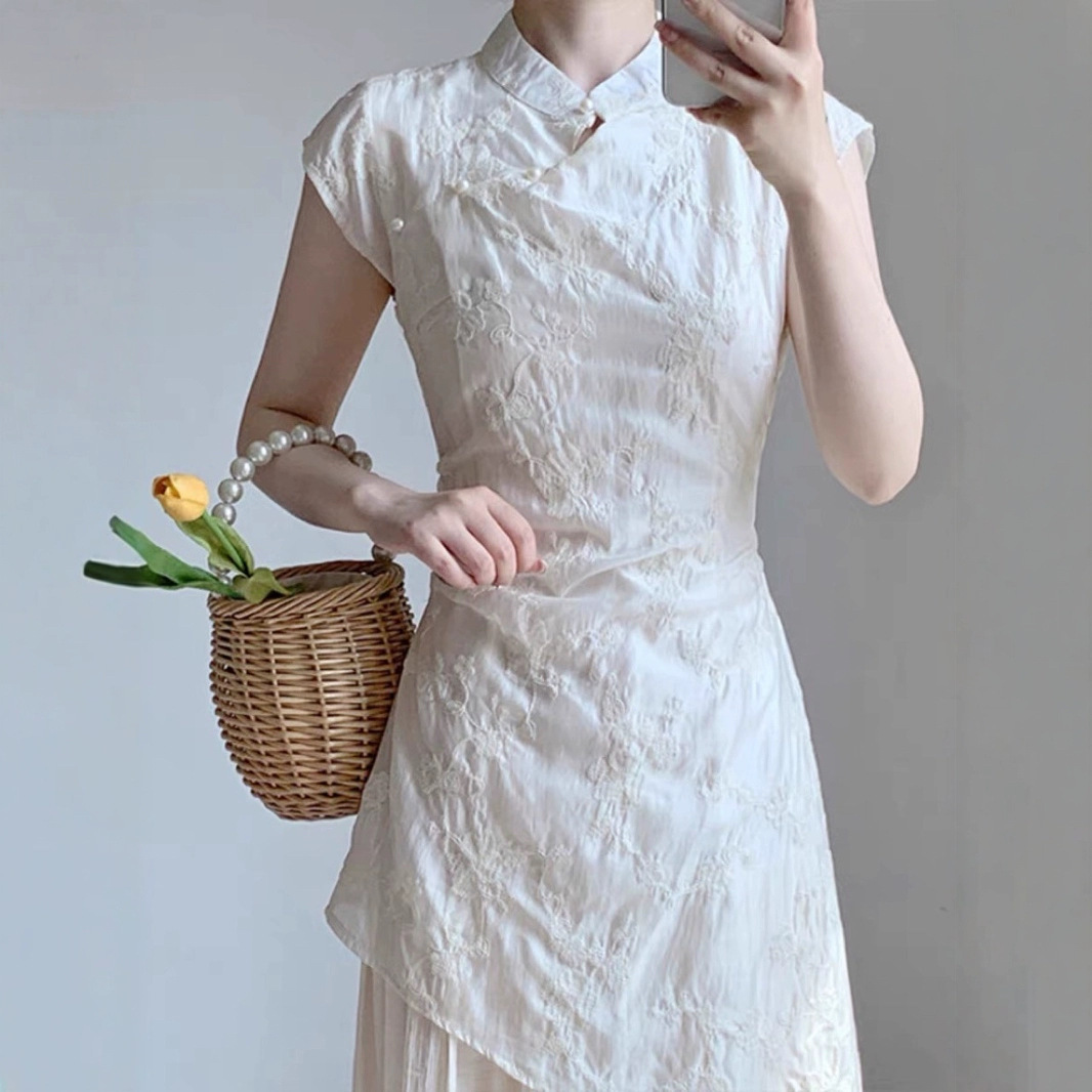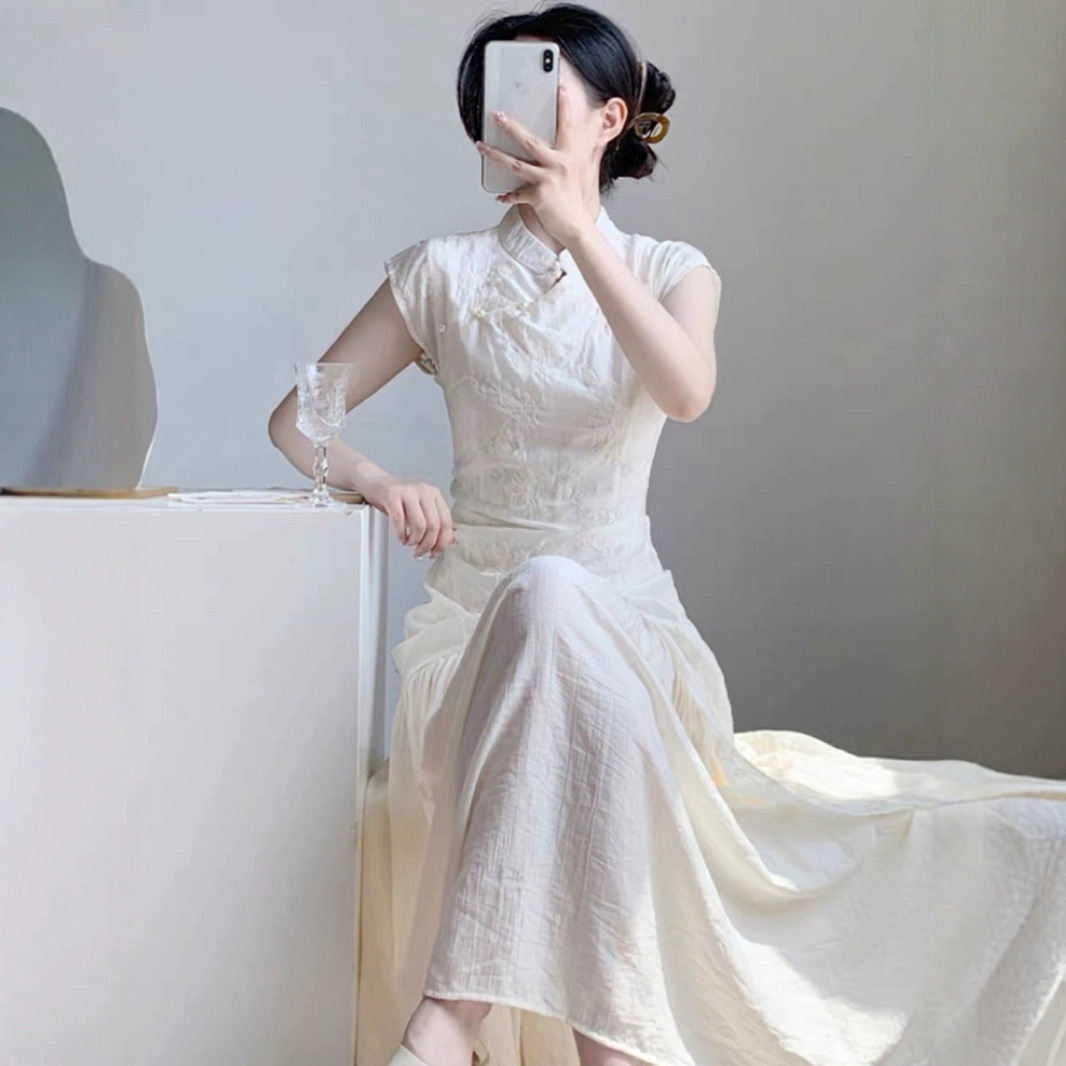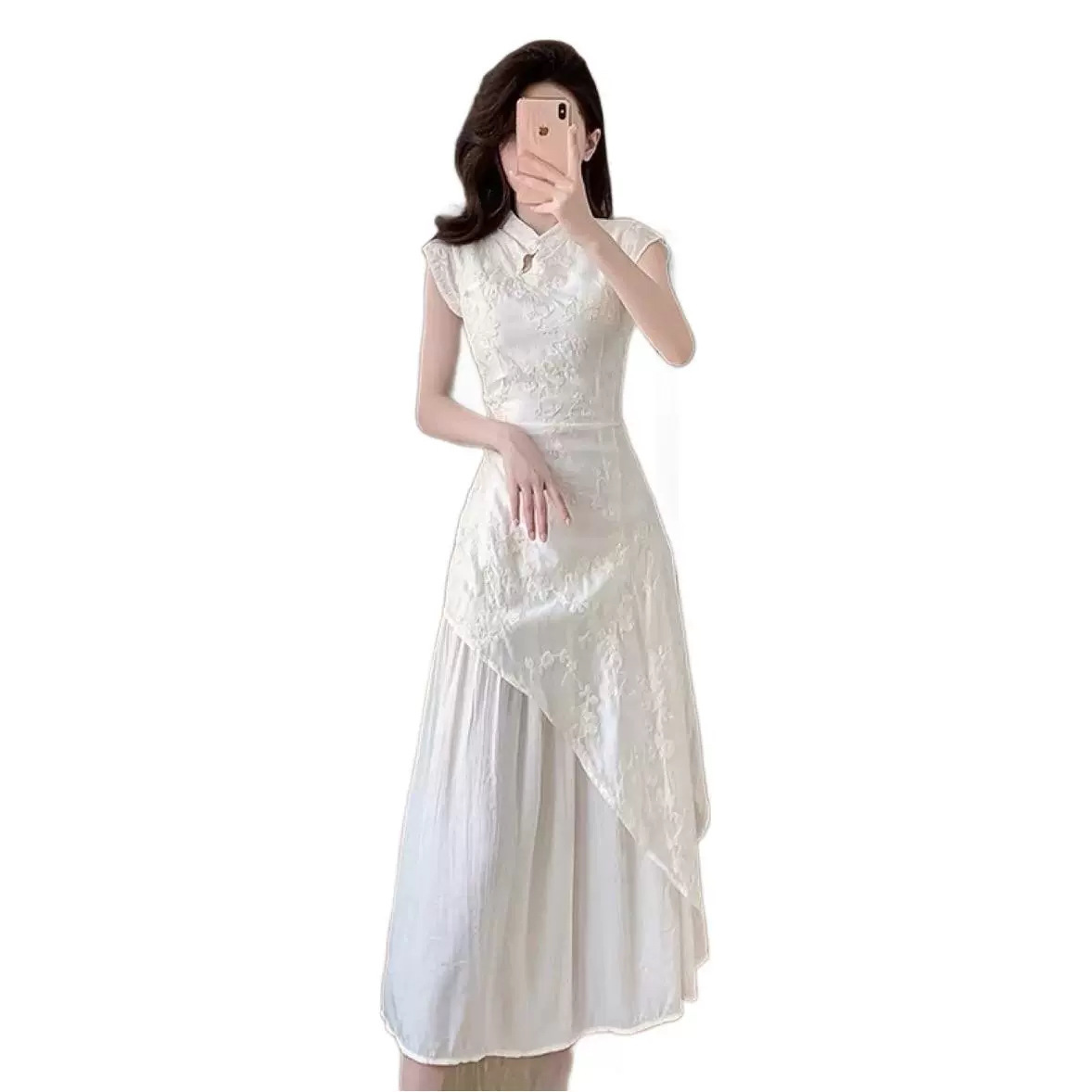 Women's Casual Chinese-Style Embroidered Stand-Collar Dress