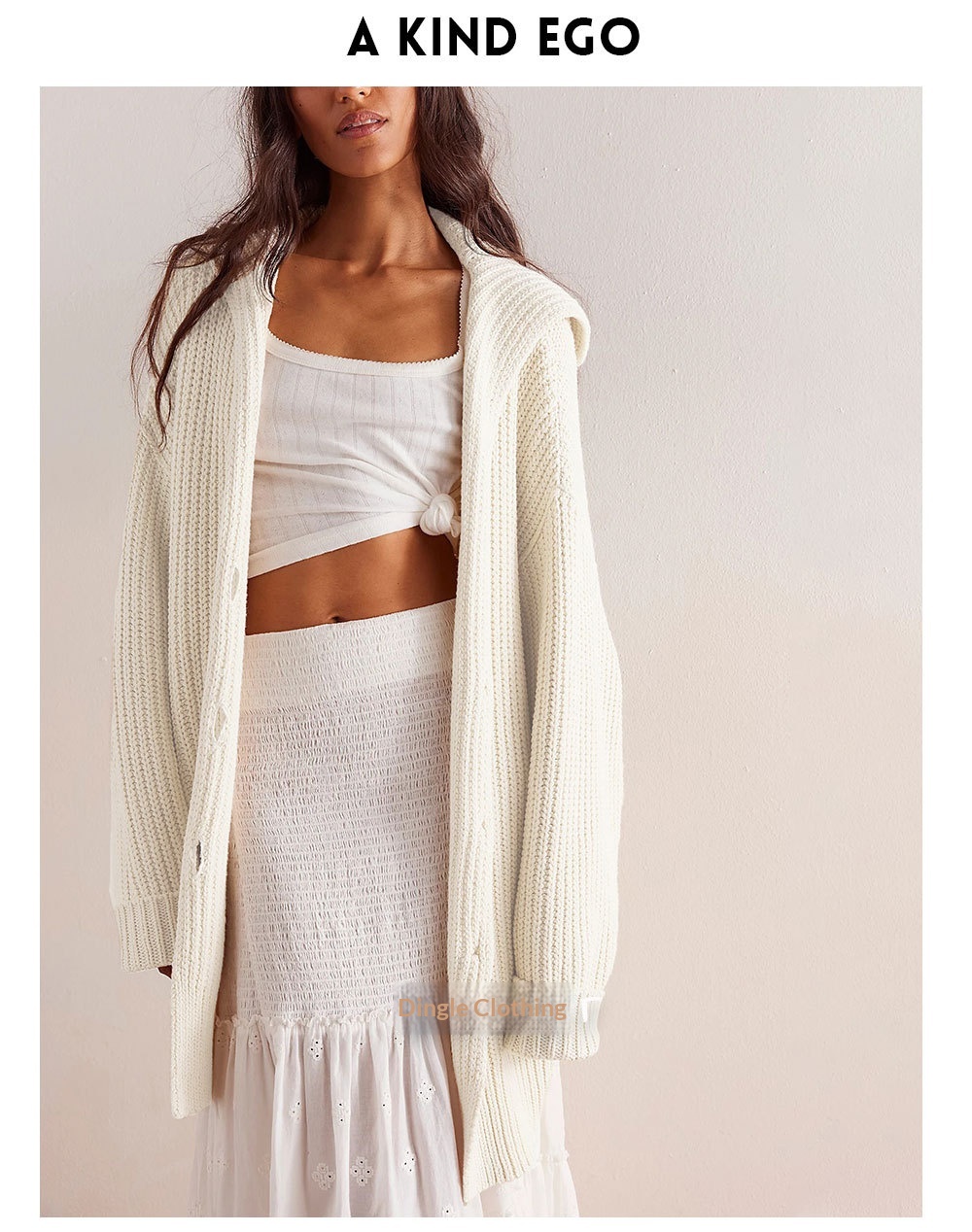 Women's Fashionable Lapel-Neck Loose-Fit Plus-Size Sweater Coat
