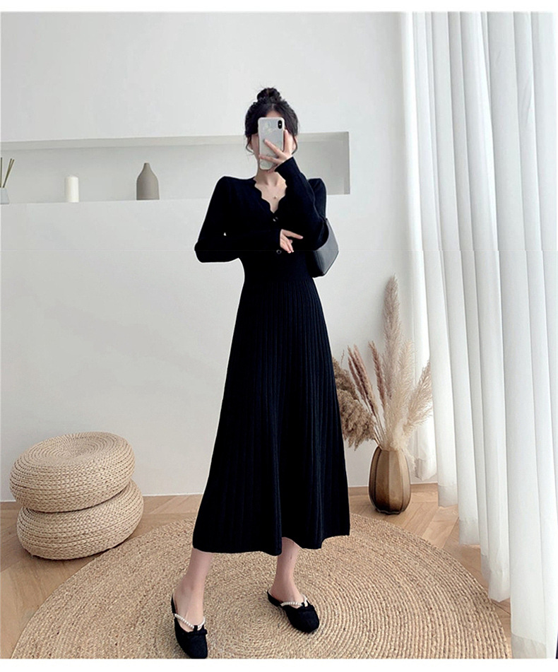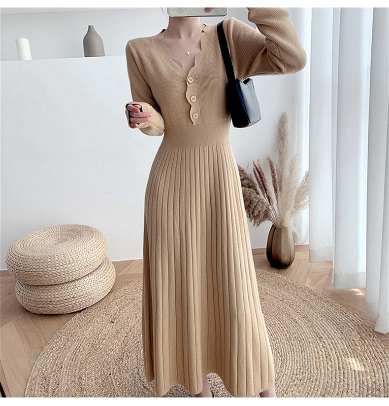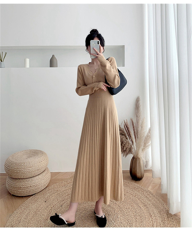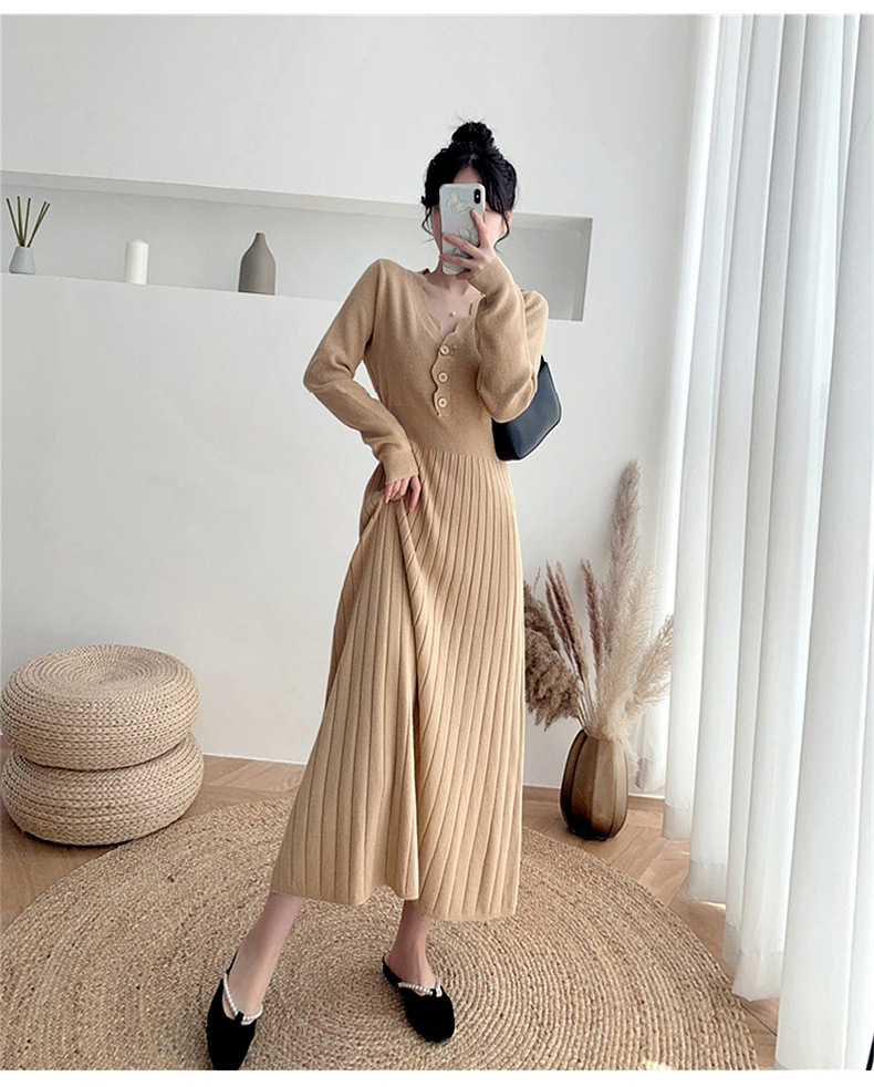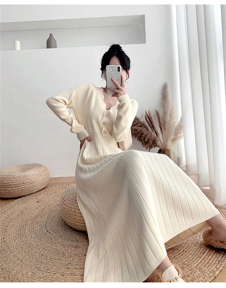 Women's Fashionable Waist-cinching Knitted Long-sleeve Dress