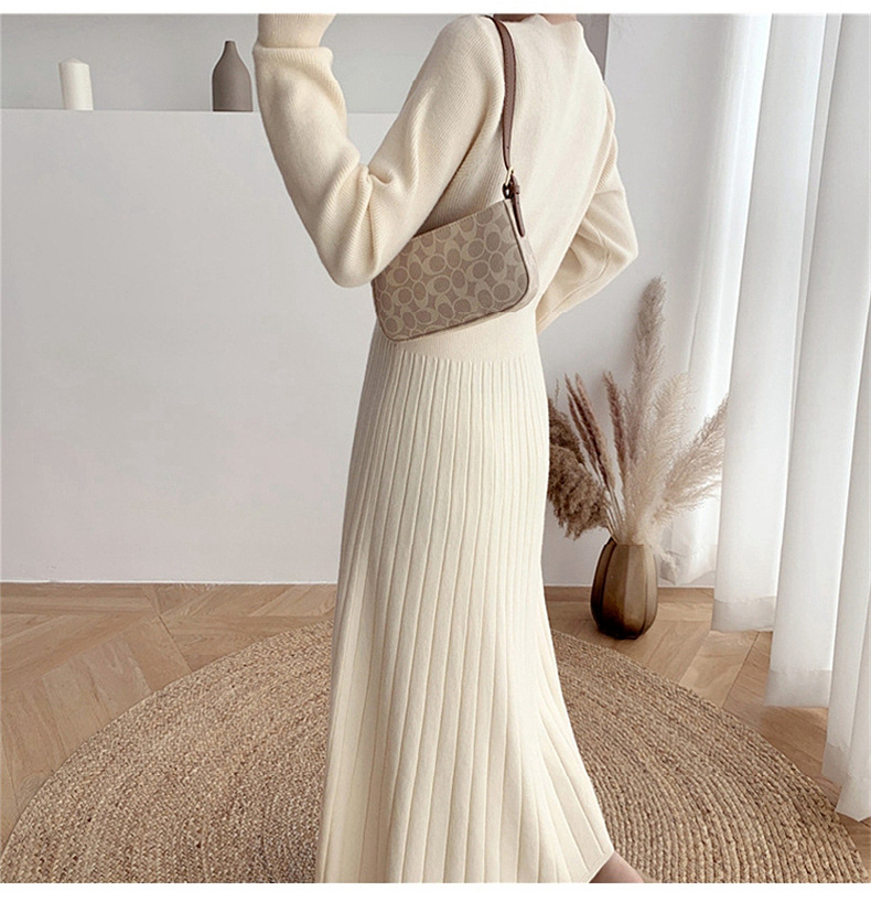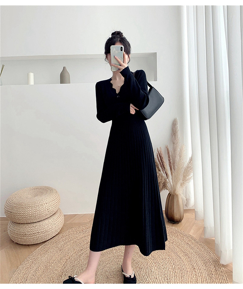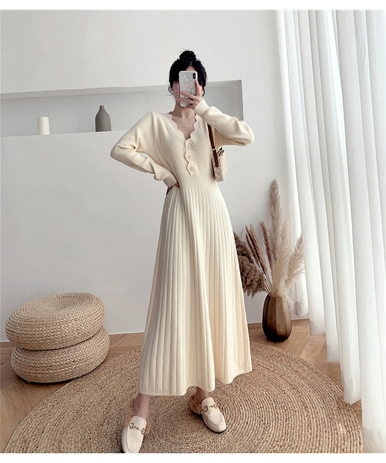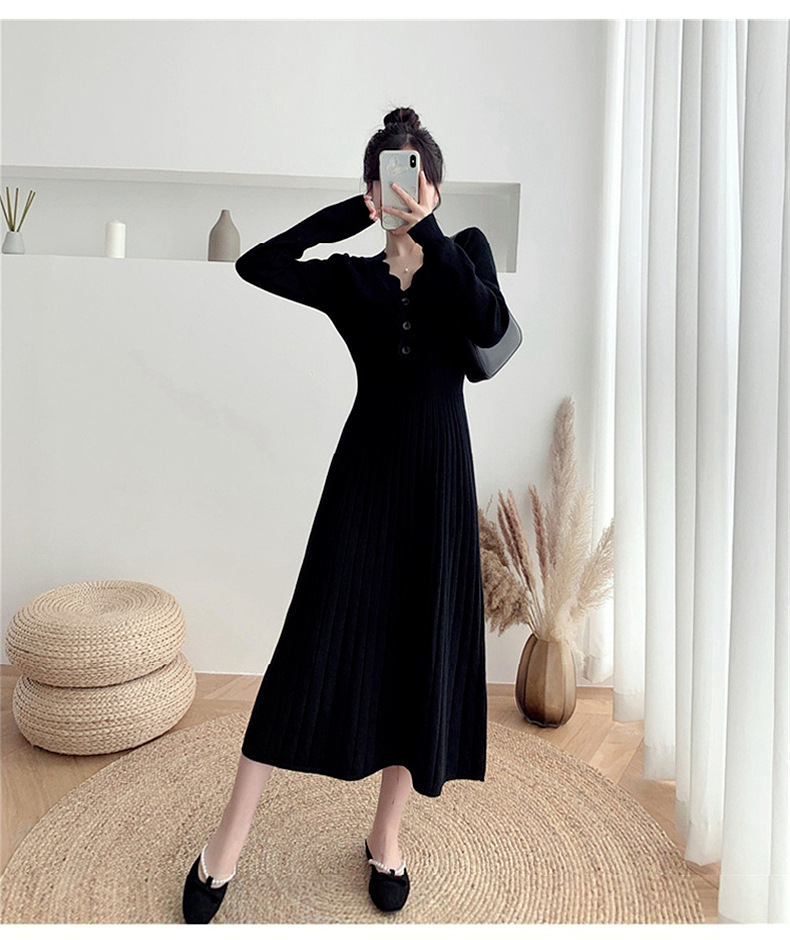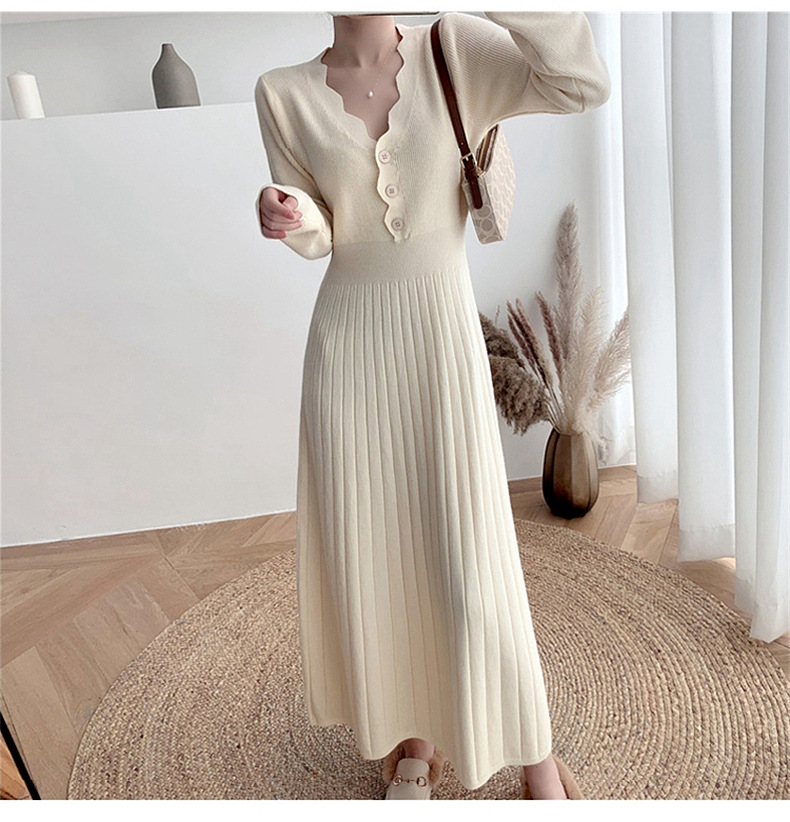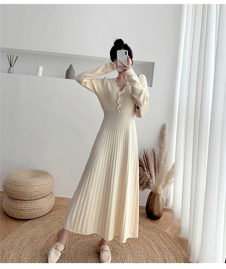Women's Fashionable Waist-cinching Knitted Long-sleeve Dress