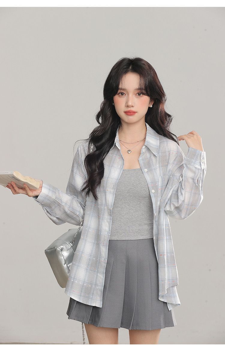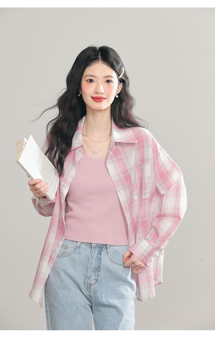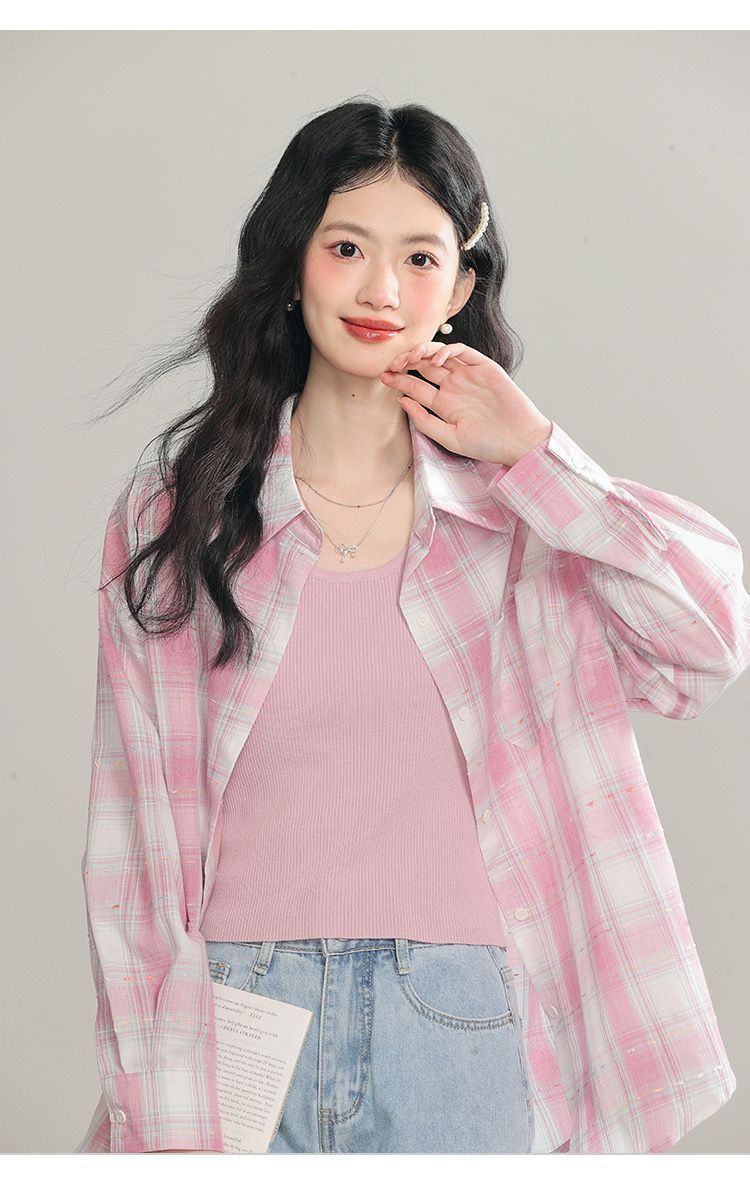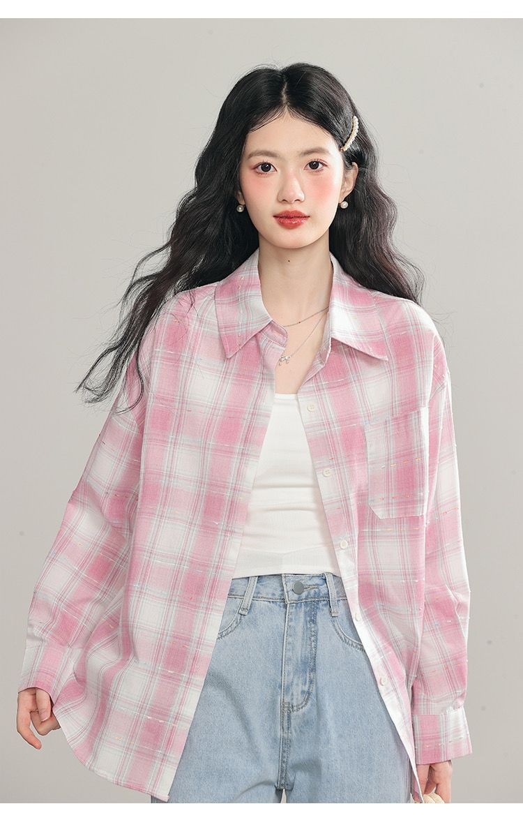 Women's Long Sleeve Loose Casual Plaid Shirt
