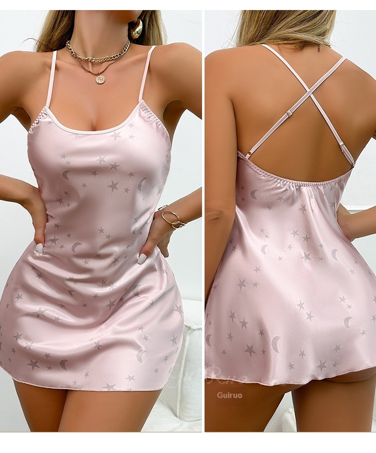 Womens Simple Printed Ice Silk Camisole Nightdress
