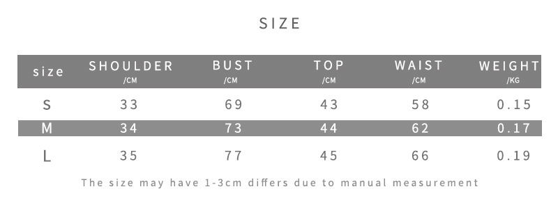 Sizes: S, M, L