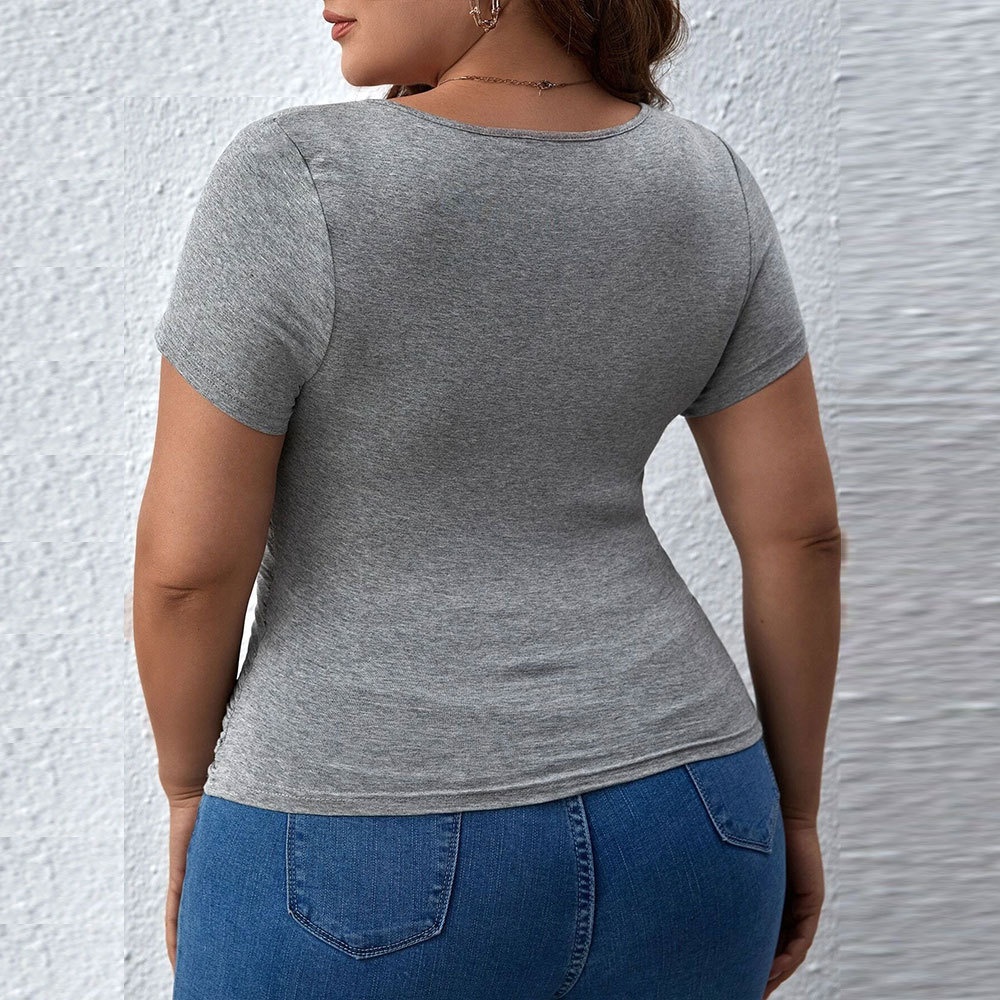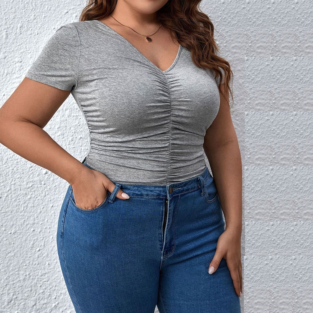 Women's Slim Fit V-Neck Solid Color Short Sleeve T-Shirt