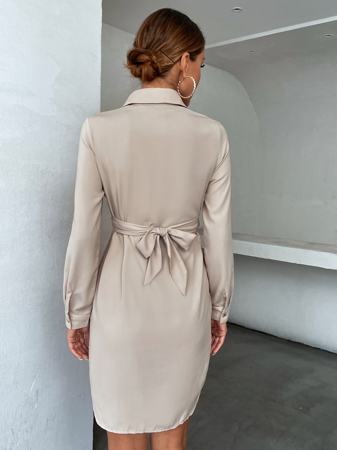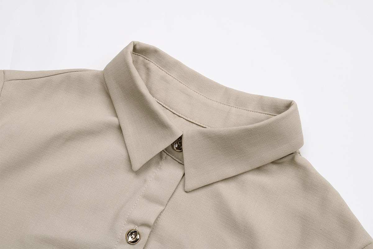 Womens Solid-Color Shirt Collar All-Match Dress