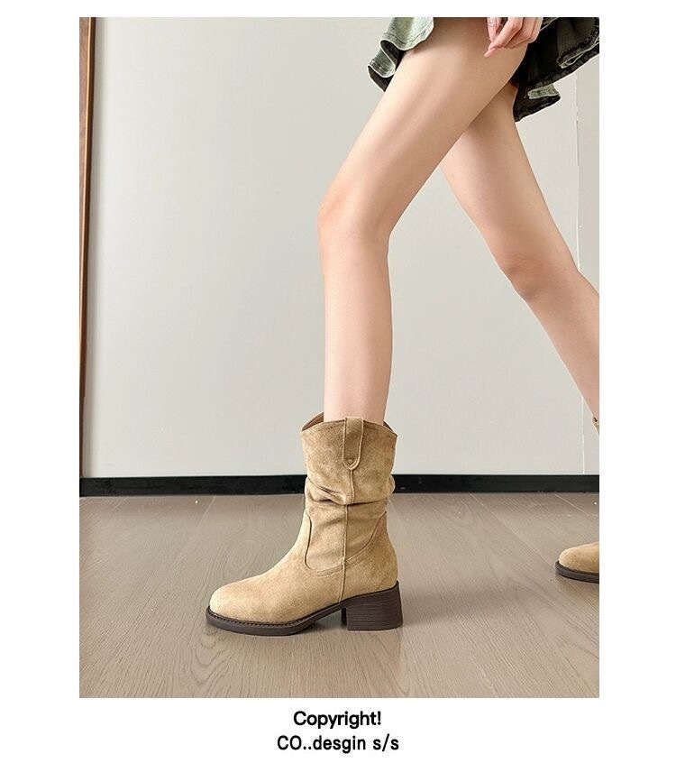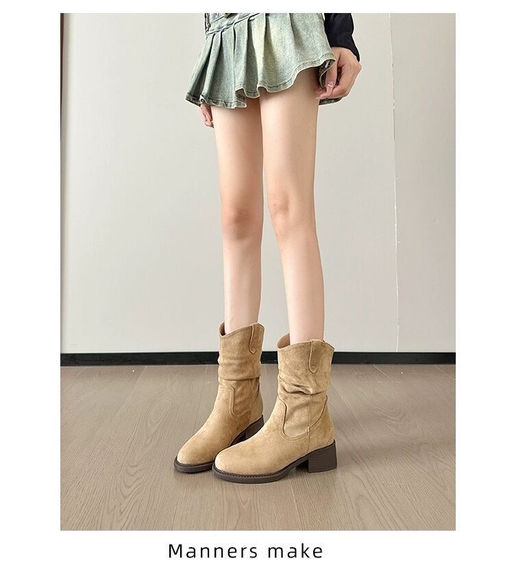 Women's Solid Color Versatile Chunky Heel Ankle Boots